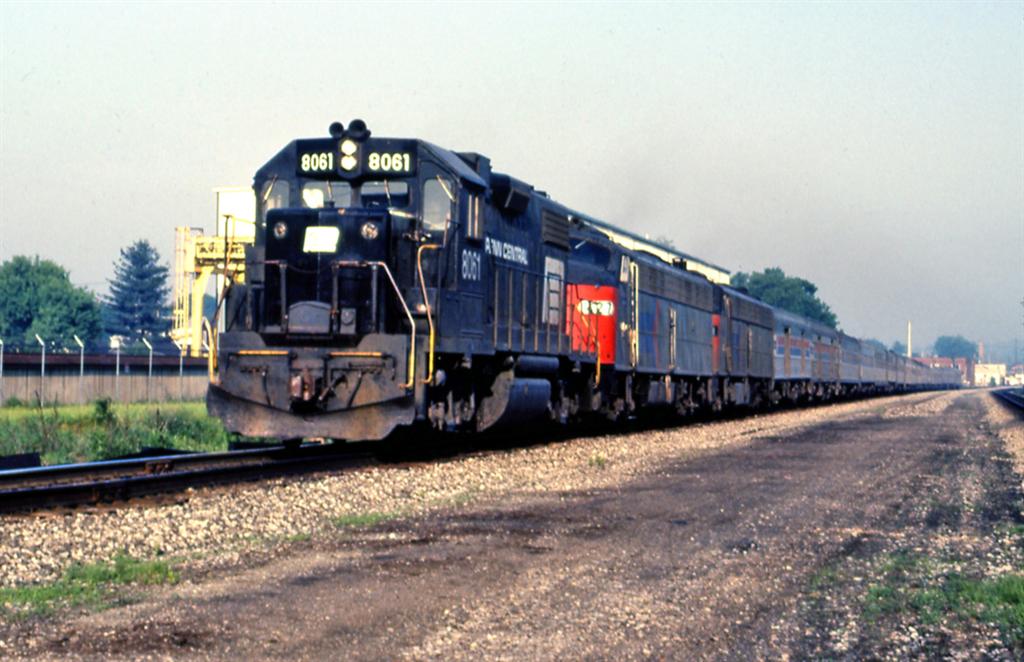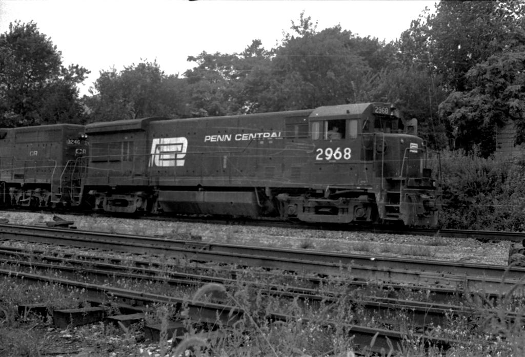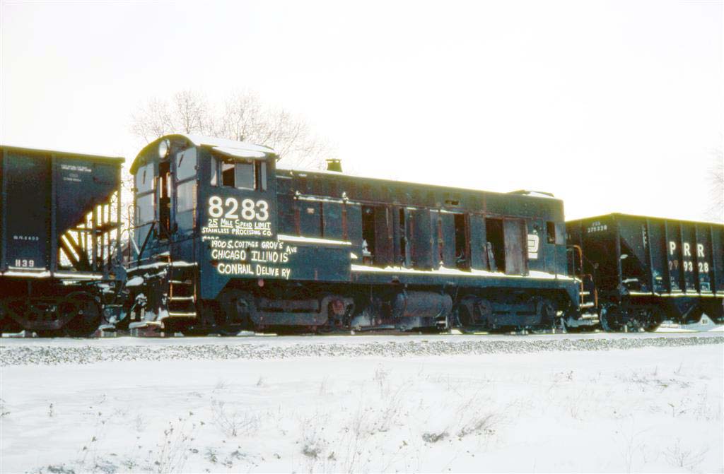 Re: PC Photo - Charlie B - 09-26-2011 Well now I'm back I'll put one up for Ralph. This should be a great PC to model Nov. 20, 1976 Charlie Re: PC Photo - Ralph - 09-26-2011 Thanks Charlie!!! Wow! Yellow Pennsy numbers as late as 1976 and the smallest PC logo on the side! Seems like exception was often the rule when it came to Penn Central equipment! Ralph Re: PC Photo - Charlie B - 09-27-2011 Another use for a gp38-2 Charlie Re: PC Photo - Charlie B - 10-02-2011 On a darned cold morning in January, 1977 These units were making their final journey to Chicago via East Palestine. These were used on locals in this area quite a bit by the PRR. Charlie Re: PC Photo - Green_Elite_Cab - 10-03-2011 Very cool photos! I think I have a Black&White photo of that VERY same Amtrak train with the GP38 in one of my books. I'll have to check it out. Apparently, with the aging E-units coming apart, it wasn't uncommon for Amtrak to borrow a PC (or later Conrail) unit to get them from place to place. Re: PC Photo - Ralph - 10-03-2011 That last series was interesting but it made me sad to see them go. You are the hardy railfan standing out in that cold! Ralph Re: PC Photo - Charlie B - 10-03-2011 It was about 20 below that day, and actually I was inside my parts dept and saw them backing up track one. I had missed seeing them going west and the train in front of them stalled on the little grade going west out of town. At the time the track was so bad the speed limit (The main Pittsburgh-Chicago) was 10 MPH, and many trains that would normally have enough momentum to make the little hill would stall. Anyhow, they backed them through the crossover at Buckeye and shoved them east to clear the crossings and circuit, then took the power to shove the first train to Salem. (20 miles west). They were there for about 3 hours. I told the service manager I was going to take a few pictures...He was always a good sport, and away I went. I was only gone about 10 minutes. Charlie Re: PC Photo - Ralph - 10-03-2011 A couple of questions for you Charlie...are some of those locos (like 8285) missing some side handrails or were they operated that way....and, are you going to model that trackside dealership on your layout? Seems like a natural! Ralph Re: PC Photo - Charlie B - 10-03-2011 Ralph, I don't know about the Baldwin switchers, but the EMD SW7 I do know did not have side rails along the walkway.(Please don't ask me how I know they don't have railings) The car dealership was in the corner building but in the 50's, my era, it was 3 buildings away from the tracks. I however, may do something to represent it, but the darned cars cost more than a brass locomotive, at least it seems that way. Charlie Re: PC Photo - Green_Elite_Cab - 10-03-2011 Ralph Wrote:A couple of questions for you Charlie...are some of those locos (like 8285) missing some side handrails or were they operated that way....and, are you going to model that trackside dealership on your layout? Seems like a natural! If you look, the handrails are bolted to the sides of the hoods on those Baldwins, its just that they camouflage with the rest of the black. I'm not sure why they are that way myself. I'm thinking it may have been cheaper, easier to maintain, or aesthetically pleasing. Re: PC Photo - Puddlejumper - 10-05-2011 Switcher type units don't typically travel at high speeds while being occupied by crews. They also tend to be just a bit lower to the ground. In many cases switchers from EMD and Baldwin did not have full side handrails, but rather corner rails, and a railing above the engine room doors. I cannot recall ever seeing an ALCo unit without full handrails. And of course, full handrails are standard for road units that will be occupied by crews while travelling at road speeds. Dave Re: PC Photo - Charlie B - 11-26-2011 East bound U-boat at East Palestine, Ohio, 1977 Charlie Re: PC Photo - LiveSteamer - 03-07-2012 Penn Central former grain car or cement car?