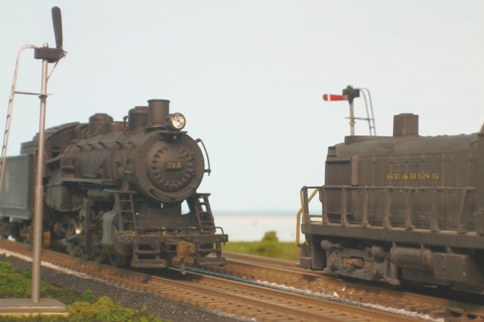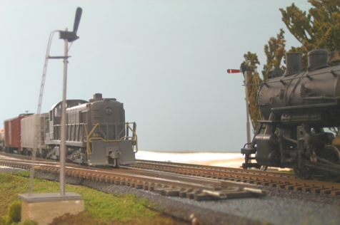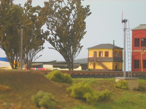 Re: E-Paw's scratchbuilt summer 09 challenge. - TinGoat - 08-26-2009 e-paw Wrote:I wanted to build A 2 hole out house as described on page 63 of Carstens "loco terminals & R.R. structures" but The kitbash is taking twice as long to complete as I expected. So, I will build something a little simpler.... A pair of HO scale operating train order signals. Very nice, but.... Building a pair of operating semiphores is easier that building an CYBO? E-Paw's scratchbuilt summer 09 challenge. - e-paw - 08-27-2009 I brush painted The top of the semaphores, and need to come up with a way to reproduce the colored aspects. At first I wanted to light them with a led, but could not find one small enough to fit inside the motor housing. I'll see what I can come up with. Now it's time to test out an idea I had. I took a scrap of brass, painted it black ,and then painted a red and a green dot on it. I'll put a dab of clear Testers glue on the dots and hopefully it will look like a glass lens. If it does I'll do the same to the signals. I also added the white stripe at the end of the signal. The glue idea worked out just fine.When they are dry I'll glue them in place with some carpenters glue so that the bond is not to permanent. While that sets up I'll put some ground foam down. E-Paw's scratchbuilt summer 09 challenge. - e-paw - 08-27-2009 Sorry I just couldn't pass up the photo op. I still need to hook up the switch machines, add some trees, and a few other odds and ends. Almost finished. Re: E-Paw's scratchbuilt summer 09 challenge. - Trucklover - 08-27-2009 Looking good Steve, the ground cover and the signals is looking real good E-Paw's scratchbuilt summer 09 challenge. - e-paw - 09-08-2009 It's finished So here is the wrap up.I mounted the control panel and attached the control rod to the switch machines. To do this I just bent a loop in the throw arm of the switch machine and one in the signal control rod so that they linked like a chain. The hardest part was to find the right spot on the control rod to do this as to not have the signal move to far or not enough. Here is a closeup of one of the finished signals E-Paw's scratchbuilt summer 09 challenge. - e-paw - 09-08-2009 The last shots are a view of Saylors junction, one looking east and one west. If you'll notice the track just kind of ends, that's because It's the only section of the main line that I've laid at this time. I also didn't want to ballast it yet, because this it a "lift out" section of the layout that crosses an Isle. I want to get track in working order on both sides of this section before It's made permanent. These shots also show the working motion of the signals. Looking east towards Stockertown. Looking west towards Pen Argyl. Just if you were wondering that's a hobby-town RS-3 and a Lee town 0-8-0 conversion. E-Paw's scratchbuilt summer 09 challenge. - e-paw - 09-23-2009 A few final pics |
