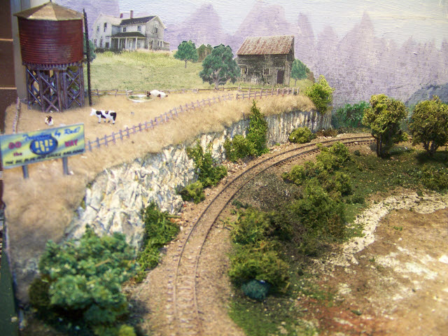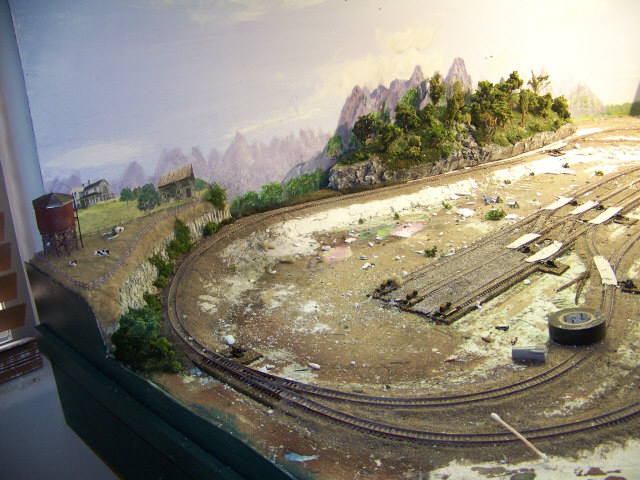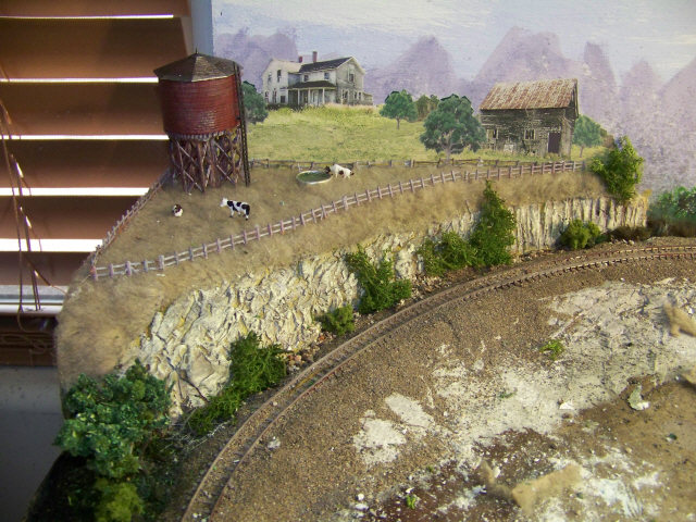 Re: Ez's 2013 duff challenge - Ralph - 02-27-2013 Looking good Don! Re: Ez's 2013 duff challenge - ezdays - 03-03-2013 The next giant step, I thought the small, flat hill in the corner would make a good grazing pasture. This is the area I'm talking about: I changed the background by adding a run-down farmhouse and barn. I made the backdrop from several separate pictures, then added the trees. I printed the picture on thin paper, then cut away the sky. Here's the overall view. I decided that the grass should be brown since the farm is neglected. There are a few cows hanging around since the land is leased from the government and it stipulates that they have to have cows grazing otherwise they'll loose the one-dollar per acre land lease. Re: Ez's 2013 duff challenge - Catt - 03-03-2013 Re: Ez's 2013 duff challenge - doctorwayne - 03-03-2013 Big improvement, Don.Wayne Re: Ez's 2013 duff challenge - ngauger - 03-03-2013 Nice!!! Re: Ez's 2013 duff challenge - Tyson Rayles - 03-03-2013 It's a perfect fit for that space, very nicely done!