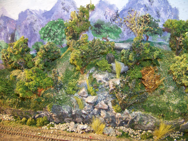 Re: Ez's 2013 duff challenge - Sumpter250 - 03-07-2013 Re: Ez's 2013 duff challenge - ezdays - 03-09-2013 Okey dokey, I'm to the point that I'm going to declare this challenge finished. There's a lot more to work on as far as the rest of the layout, but I think I've accomplished what I said I would. Here are some of the results: I added details to the hill below the pasture and roadbed: I extended the area between the hills and added trees and other greenery: I added talus and other details to the bottom of the hill: More details added as well as finishing off the roadbed: And one overall shot: |