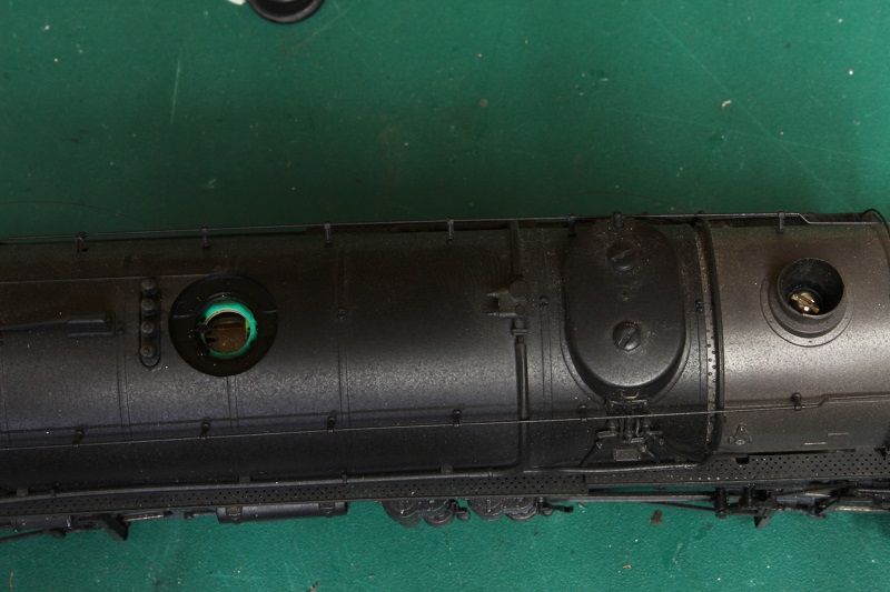I was unable to use the same attachment point for the top half of the boiler. The section of the weight where it normally attached was removed to fit a new motor. A new hole was drilled and taped for a 2-56 screw inside the smokestack to do the same job. I can lift it from the boiler with out any worry of it coming apart.