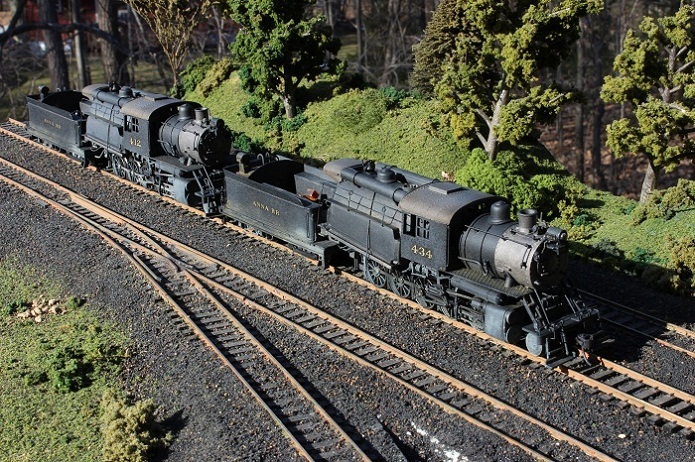 Here is a pic of the head end if the two camels. I used Testers clear plastic cement to fill-in the head lights and tender lights.