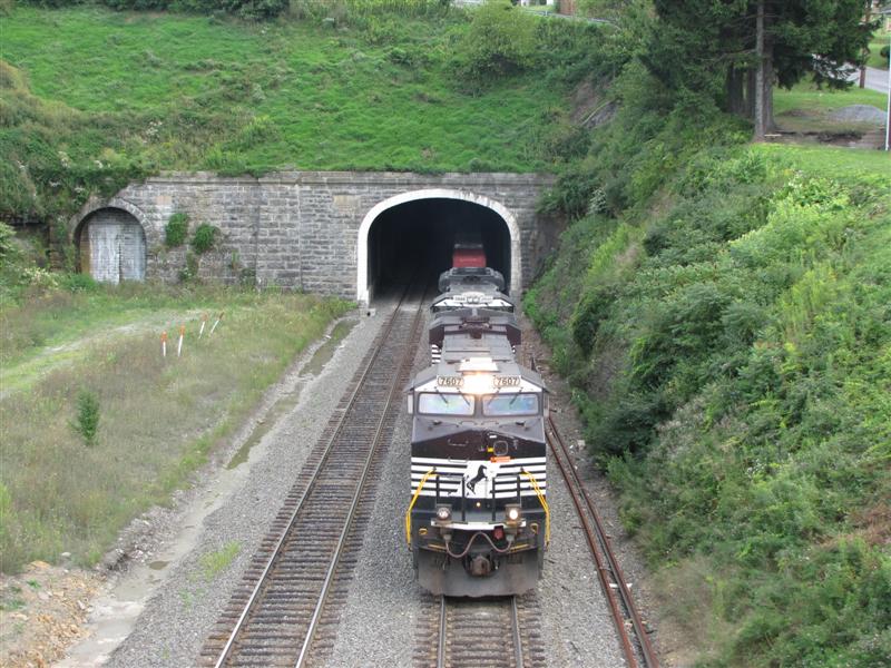 7607 leads a West bound Double Stack train on the NS Pittsburgh Line at Gallitzin tunnel ,Pennsylvania on 8-20-2012.