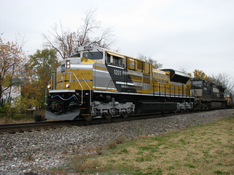 Couple of shots of EMDX 1201 on NS Caterpillar train O55 October 26, 2012