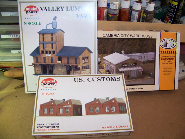 Just a preliminary post, not that I'm sure of what I'm going to be doing, but here's what I have in mind. I've got three kits, a Model Power Lumber Yard, an MP U. S. Customs and a Cambria City Warehouse kit that I'm planning on turning into some sort of furniture factory. It should look like they added to the building as their needs grew, probably around the 1900 ear when the first building was built and was added to in a hodge-podge manner a few decades later. It will still be a functioning factory, although I'm not sure what they'll be building there seeing as how most furniture is built off-shore now days.