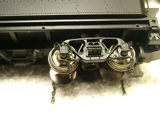OK...So I finally got around to adding power pick-ups on the tender of my PK2000 0-8-0. If you're not familiar with this model, it's got some very prototypical chains on the tender trucks. After finally figuring out how to detach them from the tender - they were held in place with tiny-teenie pins, I went about the business of putting pick-ups on the trucks and wiring them to the decoder. That was the easy part. I buttoned the tender up, checked that all was working OK, and got around to reinstalling the chains back where they belong.....