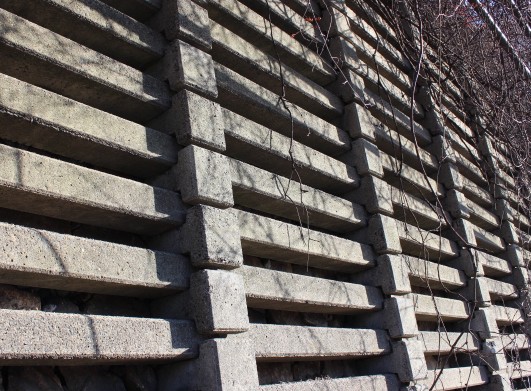 This is a more modern wall than what I have in mind, but I have not found a pic of what I'm thinking of. I don't even know what it may be called. I have seen these quite tall, tall enough for the scene I'm building. They tend to slant back as they rise. Any thoughts?