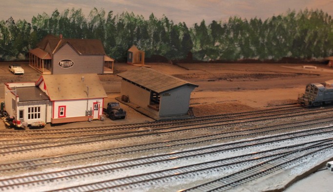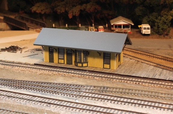 Here are a few more pics of the area I'm working on. I bought an Atlas Maywood station kit, have installed the door and window trim and assembled the walls, the roof is just sitting on it for now, I built a wood platform to fit the junction of the NYC and JGL tracks. You'll see the old Atlas lumberyard building, I need to build an office/store to go with it, I have none in mind yet so would love to see any suggestions.