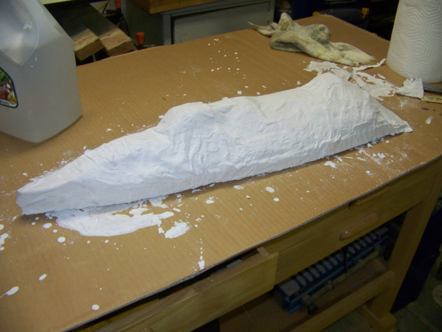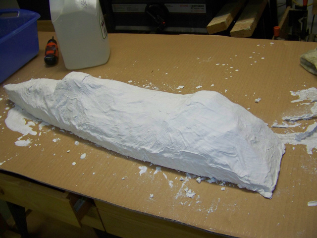 First coat finished. I used paper towels dipped in plaster just to get the basic shape of the hill: