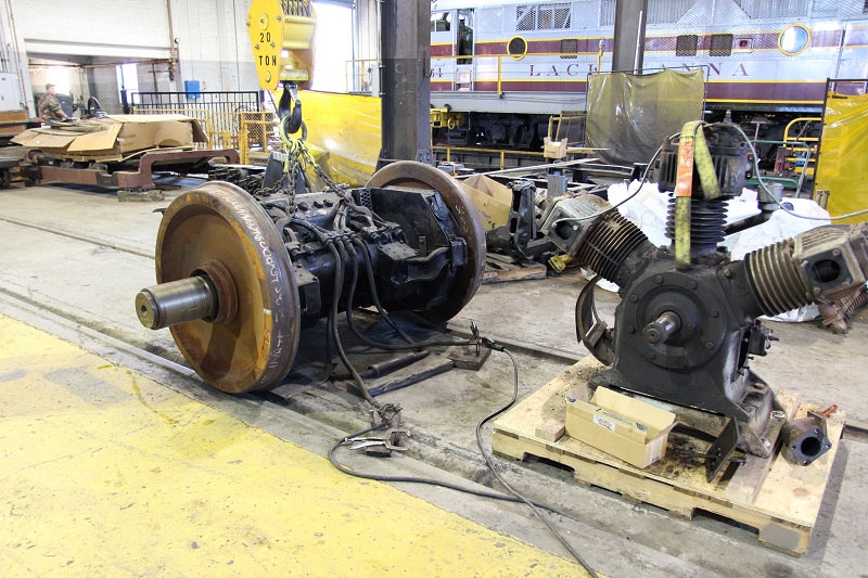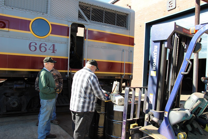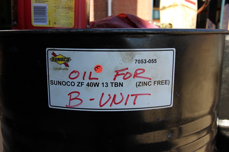 Re: 1 : 1 scale modeling - Brakie - 07-27-2016 While cab units are nice I would prefer to watch the 467 switch cars all day. The sound of a hard working Alco is a sound not to be forgotten. Re: 1 : 1 scale modeling - e-paw - 08-27-2016 A few shots from last week's excursion. Here we are putting the train together.. The consists was supposed to be one of the DL's ex-D&H Rs-3's and Our F-3 on the point to Carbondale with only 2 or 3 cars, That all changed when the Rs-3's brake system was found to be incompatible with the f's. Also, the train was lengthened to a total of 7 cars. So DL 405 an Alco C-420 was swapped out in it's place. Running along the former D&H branch to Carbondale. At the Station. Re: 1 : 1 scale modeling - e-paw - 08-27-2016 The return trip. Re: 1 : 1 scale modeling - e-paw - 08-27-2016 A shot from today's work session. Most of today was spent fabricating and installing a new buss bar to connect the main generator to the NS electrical cabinet, shown here all insulated up and installed. ( Hint----It's the shiny part )This was needed because of the different layout of the NS cabinet. The crews were occupied getting the park ready for next week's railfest. The newly painted and lettered CNJ wreck-crane and tender were switched into position near the roundhouse. Re: 1 : 1 scale modeling - e-paw - 09-11-2016 Yesterdays work session went well. 0-6-0 # 26 switched our equipment back to the rear of the restoration shop so we could continue working on the "B". This is part of the side skirting removed from our Cf-7 some years ago. This locomotive provided most of it's internal organs to bring our F-3a back to life. We need the trim section for the fuel fill, to replace one of the two missing ones on the "B". The screws holding it on have been in place probably from when it was first build by EMD. I could not get them to budge. I first tried to soak them in a tub of penetrating oil over night , that did nothing. Out came the torch, but I just could not get it hot enough to brake them free. So I ground the screw head flat and drilled them out on my drill press. I was then able to separate it from the skirting with a pry-bar. The trim is held in place by a ring with threaded holes in it. The screws pass through the skirting and into the ring to form a sandwich. I will drill and tap a new set of holes in this once I have the correct screws. When I go back up to Steamtown next week all the salvaged parts will go into a sand blast booth and parts washer before getting painted. I was also able to save the emergency fuel stop trim as a bonus. Re: 1 : 1 scale modeling - e-paw - 09-18-2016 Fuel fill ,and emergency fuel cut offs were sandblasted, primed and painted yesterday. The fill trim was also mounted. All the holes had to be re-drilled and taped in order to mount them. Lots of other smaller jobs were done on the "B" and 664, but nothing all that exciting. Re: 1 : 1 scale modeling - BR60103 - 09-18-2016 That red looks really sharp on the black tank. Re: 1 : 1 scale modeling - modelsof1900 - 09-19-2016 e-paw, my greatest esteem about your work on "1 to 1 scale" objects! I know if I will start a project that an end will come, early, some times also later. However I'm absolutely sure, this point of finishing on your project will never come. (I was a steam engine man in a back shop many years ago.) Therefore my greatest respect and recognition of your commitment for railroad objects of real world and preservation of history for future generations! Thanks! Re: 1 : 1 scale modeling - doctorwayne - 09-19-2016 I have to agree with my friend Bernhard. Thank you Steve, and thanks, too, to all those other volunteers with whom you work, and all those volunteers working elsewhere to preserve history and especially to those working on preserving the railroad things which most interest those of us here on this forum. ![]() ![]() ![]() ![]() ![]() ![]() ![]() ![]() ![]() ![]() Wayne Re: 1 : 1 scale modeling - e-paw - 10-19-2016 Thanks everyone, comments like that make it all worth it. We had a very productive session last weekend with the "B". Once we removed as much of the 40 or so year old oil as was humanly possible, we started pumping in some new stuff,,200 gallons worth of zinc fee, 40 weight. The first two barrels were pumped into the strainer box, this then drains directly into the crank case. We kept a close look out for any leaks as this was the first time in about 40 years that any oil has moved through this 567B block. The next two barrels were pumped into the pre-lube fitting located on the opposite side of the block. This allowed the oil to flow from the top deck of the block through all the cylinders , down past all the crank shaft bearings and into the crank case. Once again looking for leaks, The nice thing was that none were found. Re: 1 : 1 scale modeling - e-paw - 10-19-2016 After the first barrel was pumped into the pre-lube fitting we started barring over the engine. I didn't get a picture of that, as I was the one turning the flywheel. The next nice surprise was that the old block turned as smooth as silk. Here you can see the oil starting to flow from the seals just as it is supposed to. Soon we were able to hear the oil trickling down into the crank case. We checked the point where each power assembly attached to the crank shaft to insure we had a good flow of oil. A lack of oil at any of these points would indicate a blockage, and all was flowing nicely. Next we turned our attention to 663, she has been out of service for some time now. After the air compressor and main generator were replaced it was found to have a bad coupling between the generator and compressor. We separated the two so the Steamtown crew could remove the coupling shown here still attached to the generator. That heavy bar was placed in the coupling to support the armature , it only has a bearing on the far end, the compressor is what holds up this side. Re: 1 : 1 scale modeling - e-paw - 10-22-2016 Still on 