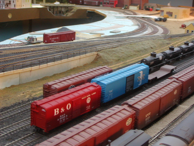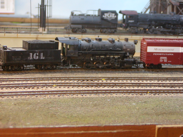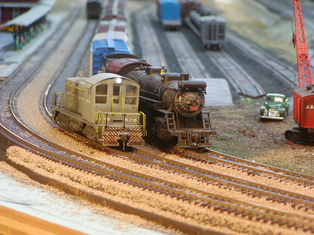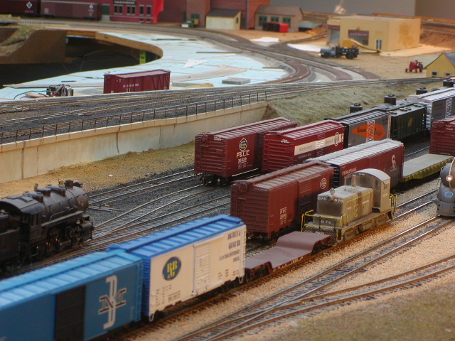 Re: HO Tour Car Pictures - Ralph - 02-03-2012 Great to see more tour photos guys! ![]() Re: HO Tour Car Pictures - Sumpter250 - 02-03-2012 Gary, I hope that wasn't the only cake......buurrrrrpppp, that was good !!! Yup! that was good! :evil: ![]() ![]() ![]() There was a couple more of 'em... Re: HO Tour Car Pictures - Mr Fixit - 02-04-2012 Well, there goes Sumpter's diet plan for 2012! ![]() Mark Re: HO Tour Car Pictures - Sumpter250 - 02-04-2012 Mr Fixit Wrote:Well, there goes Sumpter's diet plan for 2012! I had to do something, I was fading away to a Ton! ![]() ![]() ![]() ![]() ![]() ![]() Re: HO Tour Car Pictures - jglfan - 02-04-2012 ngauger Wrote:Some nice pice there I like the steam engine!!! Thanks Mikey! May be my fav steam loco. Well, our train has arrived at Blakesly. And as she pulls down the assigned track Re: HO Tour Car Pictures - doctorwayne - 02-04-2012 ngauger Wrote:Some nice pice there ![]() ![]() ![]() Wayne Re: HO Tour Car Pictures - jglfan - 02-05-2012 I'll be on my way downstairs soon to continue the Gauge car;s journey, here are a few more pics from last session, can't have too many, right? Re: HO Tour Car Pictures - jglfan - 02-05-2012 OK, so I'm back after a couple hours fun making and breaking trains. Our Gauge car is enroute to its destination of the freight house in Stockton. She's been placed at the front of a cut of cars destined for Stockton at the head end of a westbound freight. Here is some of what took place: Couldn't resist taking this shot of #676 as it sits waiting for instruction to use the run around track. Framed on one side by Eddie Willers prized possesion (JGL Comet, aka ex 2oth Century Ltd) which runs between Boston and Philly, and on the other a westbound freight beign made up. At the ash pit At the coaling tower. You can see the Gauge car! Re: HO Tour Car Pictures - jglfan - 02-05-2012 More at the engine facility. One of the shots on the turntable was while the table was moving, I was surprised it wasn't very blurry. First one is what I meant to post as last photo of last post. Well, turns out the pics I intended to post here are too big. My camera defaults to 1600x1200 and I always had a program to resixe them. Bought a new computer which my son set up and I didn't mention the photo editing program and I guess I need to download some free software, any one have a recomendation? Anyway, what is loaded on here is some windows photo gallery. Can't resixe pics as far as I can tell. So my first set of photos was shot twice, the second time at 640x480 size which I can post direct. But I have to remmber to reset the size every time I power up, and I goofed! Oh well, no shortage of pics here. Re: HO Tour Car Pictures - jglfan - 02-05-2012 The Gauge car being spotted for #588 to pick up. 588 will take her down to the other end of the yard where she'll be added to cut of cars at the head end of train xyz, a westbound freight. The second photo shows the other cas she arrived with which are east bound, and have been put one of the stub end tracks to wait for that train to be made up. Re: HO Tour Car Pictures - jglfan - 02-05-2012 A caboose being added to the rear of westbound train xyz Head end power in place While train xyz pumps up air, #676 is authorized to use the yard runaround track, her return train has been readied and will soon depart back for NYC rails. Re: HO Tour Car Pictures - jglfan - 02-05-2012 And here she is on the way! Well, it's time to get ready for teh Superbowl, go Giants. Be back in a couple days. Re: HO Tour Car Pictures - Ralph - 02-05-2012 I enjoyed all of the photos! Go Giants indeed! ![]() ![]() ![]() Re: HO Tour Car Pictures - cn nutbar - 02-05-2012 Great pictures Gary---I was hoping to see your C&O Mike,definetly one of my favourite locomotives from your collection Re: HO Tour Car Pictures - Chuck - 02-05-2012 Great pics! Where did you get the John Galt Line locomotive? I came across some John Galt Line passenger cars this summer. Interesting name for a RR. Chuck |