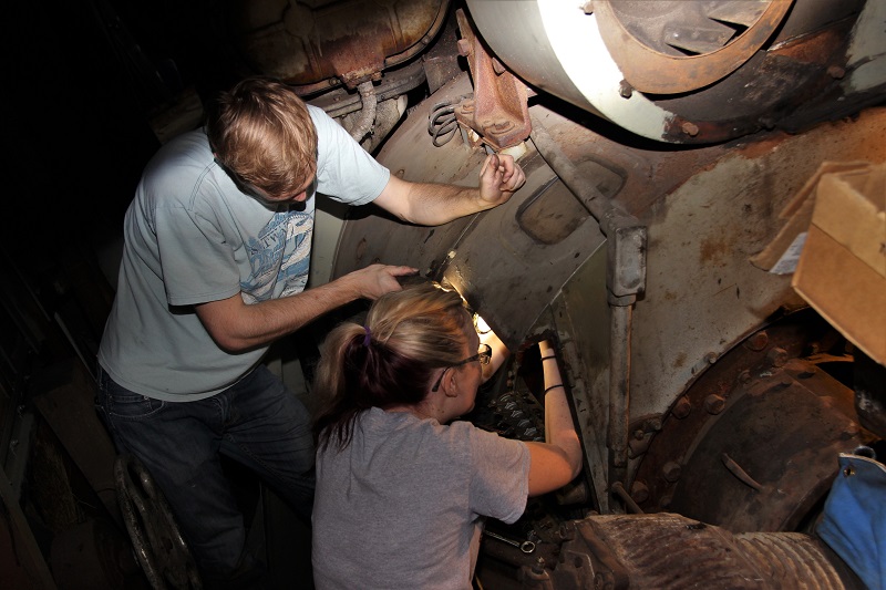 Re: 1 : 1 scale modeling - Charlie B - 05-21-2017 Thanks for posting that picture Steve. I like the looks of that unit for sure. Charlie Re: 1 : 1 scale modeling - doctorwayne - 05-21-2017 I agree. Great pictures, Steve, and a nice write-up, too. ![]() ![]() Wayne Re: 1 : 1 scale modeling - e-paw - 06-03-2017 Hello gents, More pics to post from today. The big thing from today was to finish up all the battery connections and put the batteries on charge. As with all things railroad, even the battery charger is oversized. I don't know if I have posted this before,, But this is a shot of our parts car. She is an X-Lehigh valley 50 footer. It provides all our on site storage, and is completely road worthy. We will eventually repaint her back to her original LV colors . I did do a bunch of house keeping around the "B" inside and out today, it needed it badly. I didn't take any pictures of this as it is not very exciting or interesting, just lots of vacuuming, sweeping up, and tossing out garbage. So I'll post a couple of pics of todays trains running around the museum. Here is 664 pulling the Scranton limited. And 26 on the caboose hop. I would like to have everyone look here. >>>>> <!-- l --><a class="postlink-local" href="http://www.bigbluetrains.com/forum/viewtopic.php?f=4&t=9363">viewtopic.php?f=4&t=9363</a><!-- l --> <<<<<< And invite all of you to join in. Thanks for reading along with me for all these years. Re: 1 : 1 scale modeling - ngauger - 06-03-2017 Man that's GREAT!!!!! We have got to get to Steamtown sometime this year ![]() Re: 1 : 1 scale modeling - e-paw - 06-12-2017 I spent last Sunday reinstalling the battery charging receptacle on the "B'. The plugs innards are shown here, the old wire was dry rotted and mostly bare of insulation. It's silver soldered to the back of the charging receptacle, and all attempts to unsolder it failed miserably. So on to plan B... I went to Power rail to pick up a few butt splices , the counter person informed me that they do not carry them in the correct size for the #4 wire used in the charging circuit. They suggested using some ring terminals and nut and bolting them together. It's how they do it during the rebuilds they do in shop. So here is now plan C. The splice gets staggered and insulated with rubber and plastic tape. The section of conduit that holds the Charging wire had a bad fitting attached to it called an L-B. It was replaced with a new one, and remounted between the front truck and the electrical cabinet. It's one more step towards getting her going. While I was there we got a delivery of the brushes that we need for the main generator, so maybe I will be putting them in next week. Re: 1 : 1 scale modeling - e-paw - 06-18-2017 Battery cells were toped off today with some fresh distilled water and placed back on charge, now using the charging receptacle shown in this pic. A brand new set of brushes were installed in the generator. The ones on the sides are as easy as can be. The ones on the very top and bottom of the generator are nearly imposable to get at. They require that you have an extra joint in your arm between your elbow and shoulder. The brushes are held in place by a set of spring clips and have a set of wire leads that attach to the housing. Some still need to be attached in this shot. At the very bottom of the generator, on the fireman's side is a terminal for the starting circuit. When the start button is pressed the starting contactor sends positive power from the batteries back to the generator on this wire to make it turn like a motor, thus rotating the prime mover to get it started. This connection was also completed today with a little machining of a brass plate to bolt the lug to the terminal. At the starting contactor the same thing was done. We are now just a few weeks away from our first start up of the "B". She will not be able to move under her own power yet but getting the prime mover to start and run will be a HUGE hurtle that we have over come. Re: 1 : 1 scale modeling - Charlie B - 06-18-2017 Nice work, Steve. It may be late to tell you this and you may all ready know it, but sometimes you will get a spring that is too strong and it will wear a brush prematurely. I had one on the Alco. Once I replaced the spring I never had to replace that brush, or any other for that matter. You folks do wonderful work, keep it up. Charlie Re: 1 : 1 scale modeling - e-paw - 07-02-2017 Thanks gents, I do like Alco's idea on how they mount the generator a bit better then the EMD way. Alco mounts the generator directly to the prime mover so there is no " lining up " like on an EMD that bolts to the floor. The EMD generator also has an AC winding that the Alco doesn't have, so the Alco genn is much smaller. There are lots of cool differences between the builders. When you start getting into them you can see the different ways they solved the same problem. I haven't had the chance to get my hands into a Baldwin or FM,,,, that would be fun. Today we moved some stuff from our Lehigh Gap building up to Scranton. It's nice that our Boxcar has a custom crane built into it for loading and unloading. If this keeps up we will need a bigger box car. We started to button up the compressor by hanging the after cooler and putting the mesh screen back on the generator blower. The other plumbing parts for the compressor should be delivered soon. I also drilled out the holes and mounted the pressure switch and gauge for the main reservoir. Some cooper piping and power will be added later. I removed the warning bell from it's clapper,( that thing next to the shinny box that's the pressure switch.) and repainted it . It will get reinstalled next weekend after it's dry. We also uncovered a wiring issue in the main cabinet. We tried to bump the fuel pump to see if we had any leaks in the lines, we were trying to save a little work and reuse some of the control wiring that pulls in the fuel pump contactor,,,,it went badly. The NS wire caused 