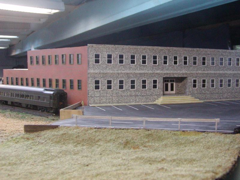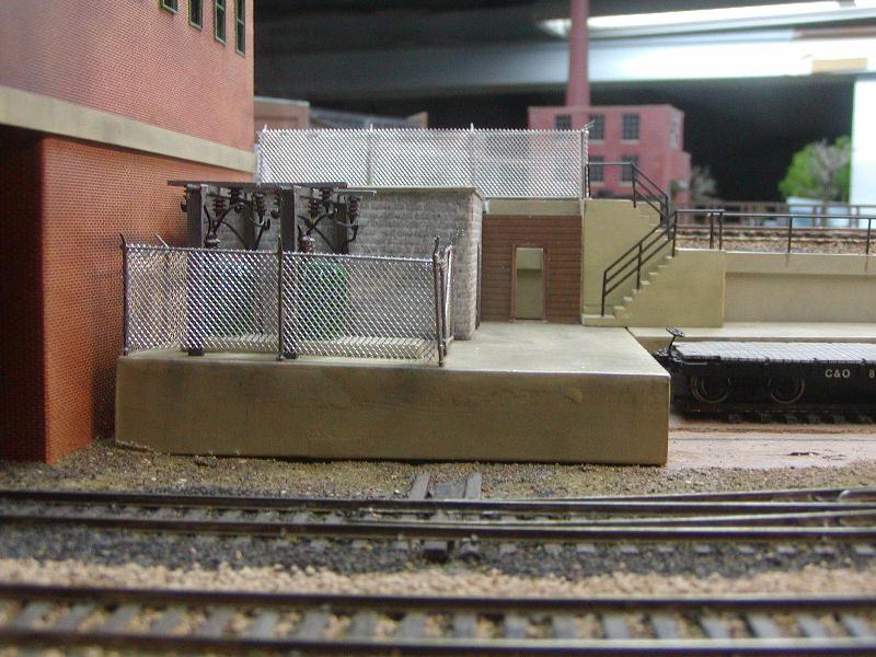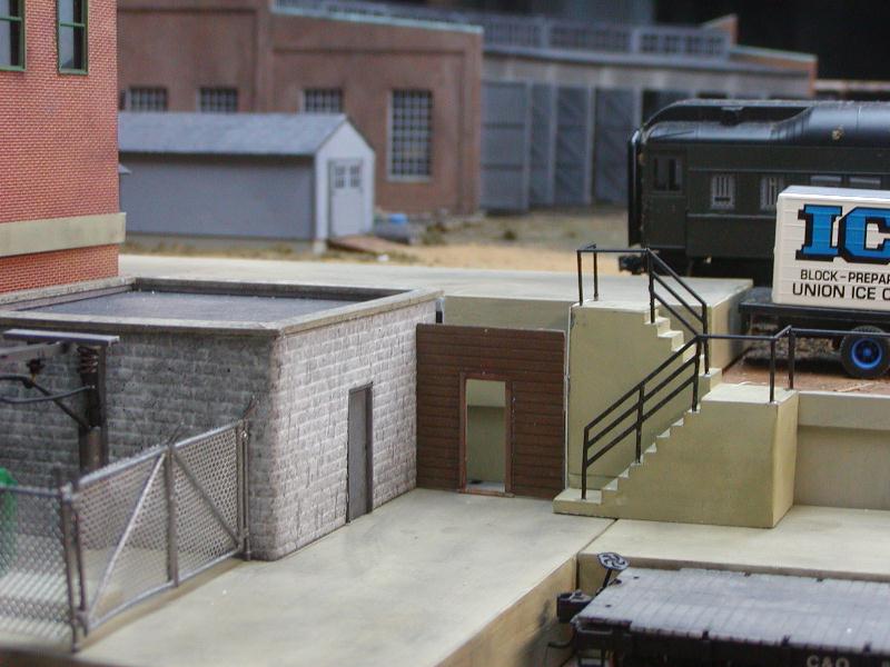 Re: An engine servicing facility for the JGL - tetters - 09-10-2009 That looks really good. Re: An engine servicing facility for the JGL - jglfan - 09-10-2009 Thanks Tetters. I finished the railings and started the small structure for between the stairs and the block structure. Now I'm gonna wait awhile to see if the proposed color grows on me. Re: An engine servicing facility for the JGL - tetters - 09-10-2009 I like that idea. Looking at it, I got the sense though that it could be something like a fire escape door from the basement area of the building. You could put a sign on the door, "Do Not Block" or something of the sort. I do love the mix of different mediums there, the concrete stairs, the brick electrical room(?) and the red siding.