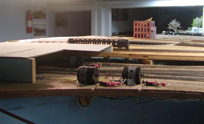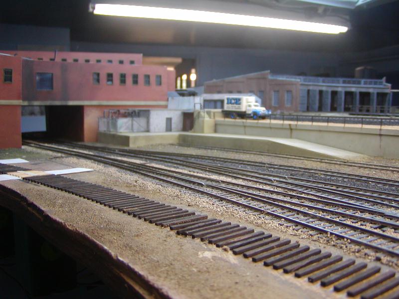 Re: An engine servicing facility for the JGL - doctorwayne - 09-10-2009 This is really coming along nicely, Gary, but one thing that I would add would be some chain link fencing along the platform and at the upper landing of the stairs. This would prevent any unauthorised access to the roof areas and, therefore, to the transformers. Wayne Re: An engine servicing facility for the JGL - jglfan - 09-10-2009 Thanks again Tetters, and that is a neat idea, an emergency exit. I had only thought of it as some kind of storage. Wayne, the fence is a great idea, thanks. I have enough material left over from the kit I used for the lower platform. Re: An engine servicing facility for the JGL - jglfan - 09-12-2009 I built a guard rail and a timber wall for the parking lot and yard access road. I figure the steel guard rail is brand new, put in place after a tired driver ran off the road. The timber wall has been around awhile, it is painted white on the end facing oncoming traffic but not visable from these three angles. Re: An engine servicing facility for the JGL - jglfan - 09-12-2009 And, I built the fence Wayne suggested. I've yet to add barbed wire to the tops. Re: An engine servicing facility for the JGL - Spitfire - 09-13-2009 eightyeightfan1 Wrote:They do look good! Unfortunately I had to remove the signs from my site. Several people (not from here - not even model RR'ers) were "hotlinking" and using up my bandwidth. Instead of getting into it with them, I just deleted the images from my site. I still have the jpgs though, so Gary, if you need them, let me know. BTW - that is looking GREAT! cheers Val Re: An engine servicing facility for the JGL - jglfan - 09-14-2009 Hi Val, thanks, I'm ok for now but will certainly get in touch when I need signs! To bad about the idiots causing you to remove them from your site. The book of signs I have has over 100 pages of signs for various industrial use, plus several pages of traffic related signs, but they are correct for 1985. Many are usable for the 1950's, many aren't. I'm not sure about the industrial ones, but can certainly omit ones with the circle with a line thru it as too modern. Some page headers: Exit signs Fire prevention Chemical and gas DOT and hazardous materials Electrical hazards Safety Machine and conveyor No smoking Parking and traffic Railroad signs Danger signs Here are a couple scans, reduced to fit here Re: An engine servicing facility for the JGL - jglfan - 09-19-2009 Another update. Except for some signs, switchstands, and roof details for the corp bldg., the area is essentially complete. Here is a photo. I built another set of stairs, steel this time, to get from the tower to the lower level. The boxcar converted to storage is one I've had for many years. Another angle of the substation scene. You can see new ties in place, more on them next post. Re: An engine servicing facility for the JGL - jglfan - 09-19-2009 Early on in the building of the freight yard, I was sure I would not have clearance for the switch machines underneath some turnouts, bue to the backdrop and helix below. So I used top mounted machines, and planned on an annex to the corp headquarters bldg to conceal them. Here is a pic from before I removed the machines and replaced them with torti mounted below. You can see some ties ending at the microswitch, the plan was to have a roll up door in the wall there so it appeared teh track went into the bldg., for some unknown purpose. Here you see the machines have been removed and replaced. The linkages to attach teh torti to the previously existing throw wire are telescoping rectangular brass tubing. The larger tube is epoxied in the slot providing a stable environment for the inner sliding tube. This shot shows I scrapped up the old ties and have laid new ones, which represent a lead to an industrial park off layout. I will be able to spot 4 cars here, fiddling on and off the layout. You can see I covered the throws with styrene, to keep them clean and free of future ballast. To compensate for the thickness of the styrene, I will use profile ties on top of the styrene, it looks like the heights then match closely. I will sand the tie tops of course to make them even. When this is done, the scene will be complete and I can move on to the diesel servicing area. |