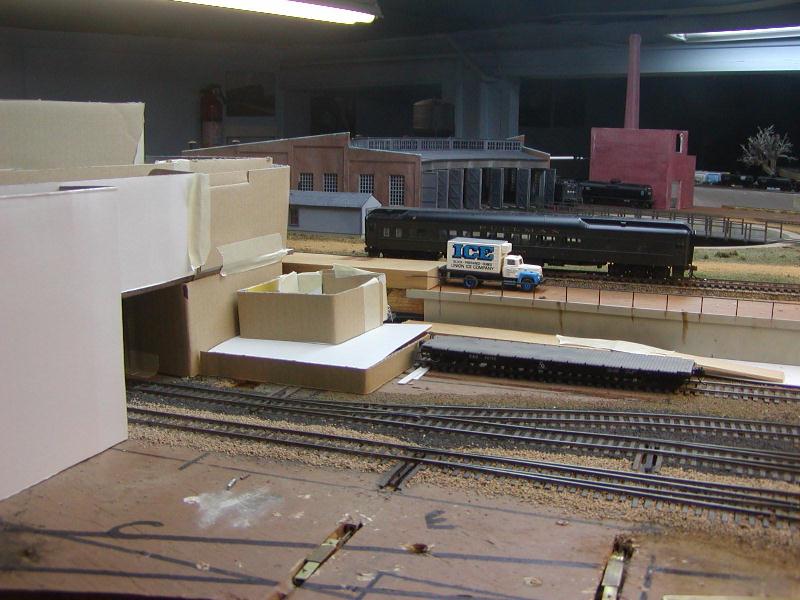 Re: An engine servicing facility for the JGL - eightyeightfan1 - 09-04-2009 They do look good! Might want to try Spitfires(Vals) sight. I think she had signs that you could download and use. Plus they were from the 1950's, so'd they would be perfect. I forgot what the link was, but I'm sure someone may still have it handy. Re: An engine servicing facility for the JGL - jglfan - 09-08-2009 Thanks Steve, Ed. Ed, I'm pretty sure Val has a link to her site in her sig, so there should be no problem finding those signs. I did some work on the stairs and am attaching some pics. I have painted teh stairs after some rework, and have installed handrails on the step portion, still need to do the landings. I extended the wall but hate the way it looks so have decided to put a small wood structure between the steps and bldg, for storage. It will just be a front wall with a door and a tarpaper roof. I think it wll add visual interest. The second pic shows I still have some fitting to do. But I think it will work fine. Re: An engine servicing facility for the JGL - Sumpter250 - 09-09-2009 jglfan Wrote:Heh, the stairs are actually for getting from the upper platform to the lower one. I'm thinking of moving them to the right a bit so the landing in the middle can give access to the road level in between. If I do, I'll have to continue that concrete retaining wall, as it doesn't quite reach the bldg. Obviously I also have some railing work to do. A trucker can then use them to get to the back of his truck. :oops: :oops: It did look like the stairs were "for the building" :oops: Moved a bit to the right, makes their use... obvious.
