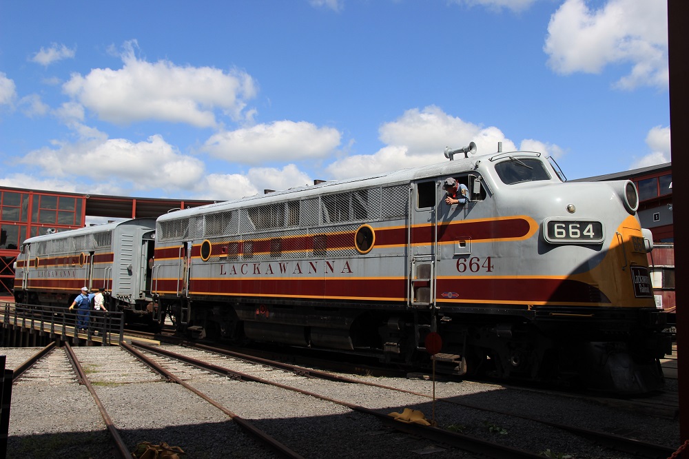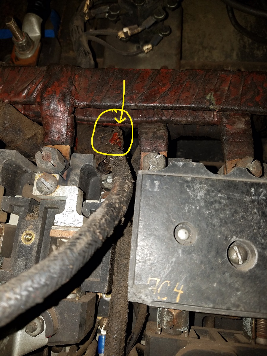 We also have a new visitor at Steamtown, an O&W 44 tonner. Another restoration group similar to ours has purchased this unit and is just starting the restoration of this project. I don't know much about this unit ,but as I learn more, I will post it here. It's getting to the point that the internal combustion units are starting to out number the tea kettles. Re: 1 : 1 scale modeling - e-paw - 02-19-2018 Toptrain and I spent the day finishing up the Quantum fan control install. We ran it through it's self test feature and the system checked out OK. Just some minor cosmetic things to button up and install the bad contactor coil and it will be 100%. I will be most likely working Saturdays and Sundays over the next three weeks so I won't be able to get up to the museum. There should still be at least another session or two going on in this time and I will update this when I get back. RE: 1 : 1 scale modeling - e-paw - 06-10-2018 Lots have happened over the last few weeks, sorry only one picture. The window rebuild is complete, except of the engineers side. We did not get the chance to start that one, hopefully we will get to that this summer. The brake stand in 664 was up for it's rebuild, I believe it's every two years. The old one was sent out as a core for new parts. The new fan control install is complete and working, but we ended up having to install two extra relays to get the hot engine alarm and shutter control to work properly. It looks like we will be in the market for another one for the B-unit..... Speaking of the "B",,,,, we have had some off and on progress on rewiring the main cabinet, working on it as time allows. In July we will have a retired NS employ coming up to work with me and complete the job. He feels it can be done in about 20 man hours. This years excursion season has begun, and a few things turned up with 663 that need attention. Some leaky engine covers, plugged drainage holes for rain water, and the #1 cooling fan was not running. The first two repairs were just a matter of swapping out gaskets and clearing dirt out of weep holes. The last one required a little more work. After some investigating I found that the problem was the contactor for that fan had one set of contacts that were so worn out that they would not close. In the above pic I have blocked off the #1 contactor in the "ON" position, you can see that the center set of contacts are just barely touching, and the set on the far left have about a 1/8 inch gap separating them. These contacts are easily replaceable if you have an extra joint between your wrist and elbow and small fingers, I have neither. But with a little frustration and language not meant for small children the job got done. RE: 1 : 1 scale modeling - JaBear - 06-12-2018 "These contacts are easily replaceable if you have an extra joint between your wrist and elbow and small fingers, I have neither. " Not that I wish to volunteer, but a cybernetic hand with optical and various tool attachments would be handy at times. ![]() Keep up the good work. Cheers, the Bear. ![]() RE: 1 : 1 scale modeling - e-paw - 07-17-2018 hello again,, lots of work being done on the "B" over the next week or so as we have a retired NS mechanic coming in to help finish up the main cabinet and a few other things. The F's have been busy pulling two excursions a week on top of switching duties and filling in for the steamer on the yard shuttle when needed. this has lead to a few problems popping up on 664. The electrical plug on her governor has developed a ground that caused the engine to shutdown while it was out on the main a week or so ago. This plug is what sets the engine speed when the throttle is notched up and down. It is also tied into the MU system so that all engines in the consist stay in the same throttle setting. I was able the make a quick fix to it by cutting back the armor, shoving some rubber gasket material into it. and taping it up this will have to be replaced, luckily it an easy fix. This also seams to be the year of cooling fan problems as the #3 fan tripped out when the controlled called for it to come on. after removing the cover I found that the BAR had done a temp repair that will need to be addressed. they cut and spliced a feeder wire from the fan contactor and left it where it could vibrate against the power buss. The insulation wore off and caused a short. I will have to remove and relocate this splice to a better spot. And now a few pics from our last trip to Moscow,,,, PA that is.. We also have some news that in September we will be celebrating our F-3's 70 birthday at our 2018 convention. we have been pushing to get our "B" as ready as possible for the big event as she will be added to the consist for the first time. We will be running a special excursion to the Tobyhanna army depot pulled by our ( and the worlds only ) A-B-A set of F3's. Although the "B" may not be able to add any tractive effort the prime mover will be started and running during the trip. We will have 4 photo run byes and tours of the units fallowed by a BBQ dinner. This will be held on the 8th and 9th of September at Steamtown in Scranton PA. RE: 1 : 1 scale modeling - e-paw - 07-29-2018 This weekend and next, the two A units will be out of service for some shop time. 663 is getting a new air pressure regulator for the control system air, and some window work. 664 is getting some rewiring work done to the fan control cabinet. and the #3 cooling fan will have to be replaced also. I finished the rewire job today, next week we will be the cooling fan and the B unit will get some attention also. Speaking of the "B" ,,,,,, We have completed all of the traction / high voltage wiring and even did some sheet metal work to the underside of the unit. We also identified a lot of control wire that is not needed and can be removed. That's next weeks work. This mornings time was takin up by a turntable move as the f's needed to switch direction to make some of our work easer.