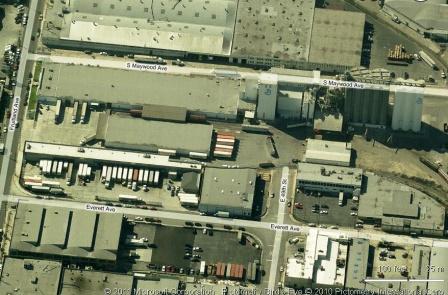 Re: Freelance 2011 - lajry - 09-14-2011 Re: Freelance 2011 - faraway - 09-14-2011 lajry Wrote:[...BUT there will be ALOT of selective compression! Hi Andi, I did look a lot via Google and Bing at that area. Do you have any further details how and what you plan to compress? Do you know what all the pipes are about in the center of my photo? I did never see so much details on similar facilities. Might be that is due to the very favorable climate in the LA basin and they saved the money to build a protective building around all that pipes. Your new posted photos match mine very good. My idea of compression is: a. The building behind the pickup on photo 1203 becomes the very left end in the corner of my layout. The very left building with the "G" will be cut off. b. The smaller silos behind the truck on 1204 becomes reduced to one row only c. The loading facility is next. It might become trimmed and the complex piping on top of it might be simplified d. The large silos on 1208 may be reduced to two gray and two white only. Will see how much space is left. One white is required to have the "G" logo. e. There will be two tracks running in front of that installation The total length is about 1 meter / 40 inch. I am very concerned the installation would be to much like a toy. The new area in the center made of four small buildings has about the same length. Re: Freelance 2011 - lajry - 09-14-2011 Here's an aerial & track charts of the "Horn Lead" where General Mills is located. The address is 4309 Fruitland Ave 90058 (Vernon CA) if you want to look it up (Acme, Bing, Google, etc.) Re: Freelance 2011 - faraway - 09-14-2011 The smal white building an the left side of the photo (not the larger fiber building in the background) is also on my layout. ![]() It is also 1 meter / 40 inch long and is to scale (it is mirrored). I think that shows the problem of dimensions very good. How can a massive mill complex occupy a similar footprint?
