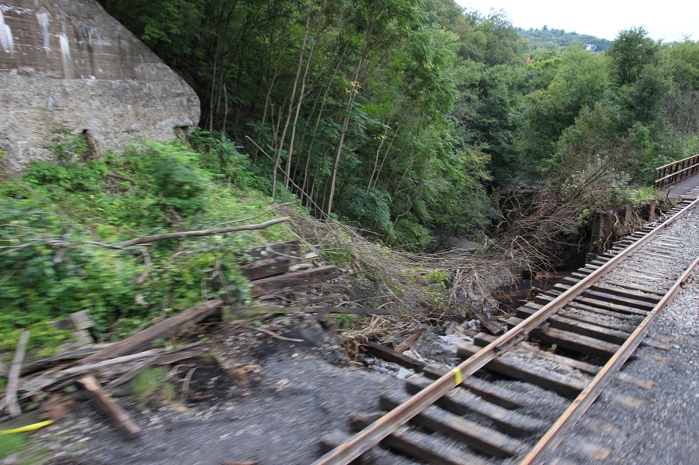 RE: 1 : 1 scale modeling - ngauger - 07-30-2018 Great work! Love turntable pictures! RE: 1 : 1 scale modeling - e-paw - 08-18-2018 Morning all......We have been plugging along with lots of chores on the F's. Next weekend we plan to put the 3 units together and perform a load and brake test through the MU line of the B. This will insure that will be able to have proper control of all 8 throttle notches and that there are no problems with the air system in the "B". We are not worried about the brakes so much as we did a lot of work to them back when NS took them down to Spencer for the Streamliners festival. If the independent and automatic brakes did not function correctly NS was not going to move them. As for the trainline MU, I have checked it over several times with a meter and found it OK. We have never done a practical real world test , we are confident that it should be fine . I'll give a walk through of how that works when we try it out next week. The two "A" units have been in constant usage this summer pulling the yard shuttle two to three days a week, and excursions every Saturday and Sunday. so squeezing in time for maintenance has not been easy. As for other goings on,,, Steamtown will be getting a new director, the current one will be filling a new position inside of the NPS. A temporary Director will be appointed from Steamtown until a new one is found. This should not effect us as we are in the middle of a 5 year contract with the parks department. It also looks like we, ( the ARHS volunteers ) will be given hostlers training. This will allow us to move our equipment around inside the yard and shop area without the need for a Steamtown crew. The last thing that I want to get to is the weather....The rain and Hot, Humid weather has been relentless this summer leading to some equipment problems and crew fatigue. It has also taken it's toll on the railroad. At this time there are several wash outs on the Pocono main. Yesterday after time spent working on 664 and the "B", Toptrain and I went to check one out at the western portal of the Nay Aug tunnel. These washouts have put this part of the main out of service for the next two weeks. So now hopefully we will be able to get some restoration work completed and the main will be open for Railfest and our convention. RE: 1 : 1 scale modeling - e-paw - 09-02-2018 A few shots from this years railfest at Steamtown on a very gloomy Saturday. I spent most of my day running as the mechanic on the photo excursion. RE: 1 : 1 scale modeling - e-paw - 09-02-2018 Most of our trip had a 10 mile per hour speed restriction because of all the wash outs from last months rain. Repairs were made by the DL in order to get the line back open but the restriction will be in place until the track work is complete. A few pics of the damage. RE: 1 : 1 scale modeling - e-paw - 09-02-2018 A few more to wrap it all up. A shot of an ATV that crossed in front of us, if the line wasn't restricted to 10 MPH we'd still be picking parts of this guy out of our front coupler. On the right just past the ATV are some barriers. Between them is a fire trail that is gated and locked, the only way to access this point is the fire trail. The ATV came out from the trail , turned left towards us, then jumped off the tracks to where it is in the pic. RE: 1 : 1 scale modeling - e-paw - 09-02-2018 I have a few more pics to post on what we've been up to ….. Next weekend is our (the ARHS) convention where we will be celebrating the 70th anniversary of our F-3's. It will also feature our F-3b in consist on it's first excursion. We were hoping to have the prime mover running on this trip, but with having to keep up on maintenance of the other two A's. we just did not have the time available to get here running. She will however be dead in tow on this trip. The good news is that when we tested her in MU, we were able to get all 8 throttle notches through the MU line of the "B" as well as a good load test. The independent and Train line (automatic) brake also functioned as it should. This means that we can control all the necessary functions of the two working ''A'' units from either cab, through the "B". What's holding us up from starting the "B" is that we need to install a new governor and that we need to rewire the " start / stop / fuel pump" circuit to work with the Norfolk Sothern controls in our main cabinet. The governor arrived at the shop earlier this week, it is what takes the electrical signals from the cab (or another unit in MU) and uses hydraulic pressure to adjust the engine speed to the correct throttle notch. With railfest going on this weekend, not only do we not have the time to install it, but now it may be needed in 663 as she keeps shutting down in low idle. This is due to the hydraulic pump in her governor not being able to keep up pressure . The rewire is another story.. When we first wired the starting cabinet, we did it as per the old EMD drawings. Then the new Main cabinet was installed. We did not even consider that this could be a problem until we tried to get the starting contactor, kill circuit, and fuel pump to work with the emergency shut off. With the type of relays in the NS controls it just was not going to happen. luckily all that is needed is to change out and rewire the fuel pump switch and remove the old start button from the circuit. I removed the cover from the starting cabinet yesterday and took it home with me to get this project going. Here's what it looked like when I got it home. After some cleaning with white vinegar and tin foil it looked like this, after a quick buff with some fine steal wool. That's the new switch on the left , and the faceplate for it on the right. I located the holes for the new switch and drilled them out. I also had to re tap the mounting holes in the switch... Screws were not included to mount it to the cover, and I could not find a match for them , they might be metric. So now they are a standard 10/32 threa
