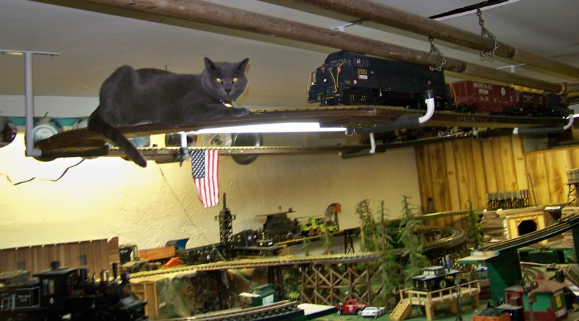 Re: MF&W RR Re-deux :D - Steamtrains - 10-28-2009 That's coming along nicely...It's an awful huge N-gauge..No..?? ![]() Re: MF&W RR Re-deux :D - ngauger - 10-28-2009 Steamtrains Wrote:That's coming along nicely...It's an awful huge N-gauge..No..?? ![]() ![]() ![]() ![]() ![]() ![]() Re: MF&W RR Re-deux :D - MountainMan - 10-29-2009 NC gauge - No Cats! ![]() Re: MF&W RR Re-deux :D - ngauger - 10-29-2009 MountainMan Wrote:NC gauge - No Cats! ![]() ![]() ![]() Re: MF&W RR Re-deux :D - ngauger - 10-29-2009 Here's a video to look at ![]() ![]() <!-- m --><a class="postlink" href="http://www.the-gauge.net/magazine/96.MOV">http://www.the-gauge.net/magazine/96.MOV</a><!-- m --> Re: MF&W RR Re-deux :D - TrainNut - 10-29-2009 Wow! Sounds like you almost need earplugs! Who knew those little eggliners would have enough power to tow anything! Cool. Re: MF&W RR Re-deux :D - ngauger - 10-30-2009 Yeah - I hardly ever run all 3 together... There is no ballast, so the suspended wood acts like a speaker ![]() But it's not "too loud" plus - it's trains!! LOL it's a nice sound ![]() ![]() ![]() Re: MF&W RR Re-deux :D - ngauger - 11-11-2009 Got a few more things finished on my "To-Do" list ![]() ![]() Trolley is now running on it's never ending (I hope) back & forth newly installed track ![]() ![]() Re: MF&W RR Re-deux :D - ngauger - 11-11-2009 Carolton junction is finished.. Just details to do as always: I re-did the missile Launch site and gave it a bit more local history ![]() A little known history of the JGBSMF&W RR (MFWRR) was that; during WWII it played an important, albeit minor role, in the United States defense. Located in the mountains of Northwestern PA, the railroad was used for a time by the 99th Division of the U.S. Army. At the time it was a logging and mining railroad. Newly de-classified C.I.A. items show; that on a non-descript war logbook on page 345 of 1603 – paragraph 4 states: The MFWRR will be used for storage of SR-GTA and SR-GTG Missiles for the intended defense of the Great Lakes and the St. Lawrence Seaway region of the Northern United States. Interpretation of the acronyms reveals Short Range Ground-to-Air and SR Air-to-Air missiles were stored there… The Missiles have all been disarmed and have been Abandoned In Place (AIP). They also left a single Mobile Missile Launch Rail Vehicle (MMLRV) that still contains a missile (Disarmed) in the ready to launch configuration. Most definitely an item for historians to visit and review. The area has been cleared as being safe and secure, and therefore we will not be moving any of the AIP items. However we are extending the lead in track right of way to compensate. Pictures attached for your review. Re: MF&W RR Re-deux :D - ngauger - 11-11-2009 and - you KNEW i couldn't let this go too much longer...... Templer Acres has been repaired and restored ![]() Re: MF&W RR Re-deux :D - ngauger - 11-11-2009 and after 7 years - i finally put teh MF&W logo patch in the center of the croosbuck!! This is a major achievement ![]() I also updated the lights and added the black disks behind them Re: MF&W RR Re-deux :D - Sumpter250 - 11-12-2009 ngauger Wrote:and - you KNEW i couldn't let this go too much longer...... Templer Acres has been repaired and restored Ahhhhh, Diesel Golf. You know..........Putt Putt, Putt Putt. ![]() ![]() Re: MF&W RR Re-deux :D - ngauger - 11-12-2009 Sumpter250 Wrote:Now you ruined it for me -- forever!!!! hehehehe I'll think of that every time I drive by my local Putt-Puttngauger Wrote:and - you KNEW i couldn't let this go too much longer...... Templer Acres has been repaired and restored ![]() ![]() ![]() Re: MF&W RR Re-deux :D - ngauger - 12-21-2009 OK - this is turning into Therapy LOL I'm on Vacation! and workin' on da railroiad ![]() ![]() Since the Climax Steam Loco runs on the second level - I had to move the water tower and coal bunker "up" to where the steam train runs.. Makes sense right?? ![]() ![]() ![]() ![]() ![]() ![]() ![]() ![]() More Pics!!!!! Coal Bunker in place, but the mountain is only primered ![]() Re: MF&W RR Re-deux :D - ngauger - 01-12-2010 Some more pics Damn Cat!!!!!! Store bought portal Hand built portal |