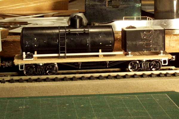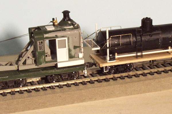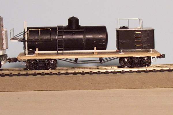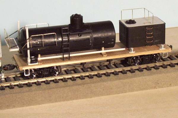 Re: sumpter250's 2010 Spring Bash Challenge - e-paw - 02-13-2010 Nice , like the pumps. Re: sumpter250's 2010 Spring Bash Challenge - Sumpter250 - 02-13-2010 In this shot, I got the crane cab doors done, and the outriggers. You can also see the vent on the roof, the generator, the conduit run from the generator to the distribution box, where the pumps get plugged in, and, back from the top of the door, the fuel filler pipe. The steps had to be removed to install the outriggers, so I will have to either get to the LHS, and buy some steps, or make them up from brass flat strip.........it's a matter of ambition. You can also see some of the end beam detail on the flats. ( Brass NBW castings, and grab irons ). Re: sumpter250's 2010 Spring Bash Challenge - Sumpter250 - 02-16-2010 Got some work done on the "tender" flat. Started routing the "plumbing", added safety rails on top of the oil tank, and "handgrabs" for ladder access to the top. I still haven't figured out exactly how I will do the hoses, and support structure for them. I have to consider what would be the most logical (and safe) way of actually transferring fuel and water, from the "tender" to the crane. I'm currently thinking of a tilt down platform, that the crew can work from. Whatever, there will be some angle iron cutting and welding that will have to be done. Camera batteries died while trying to shoot pics of the details......they're on charge now........"photos at eleven"