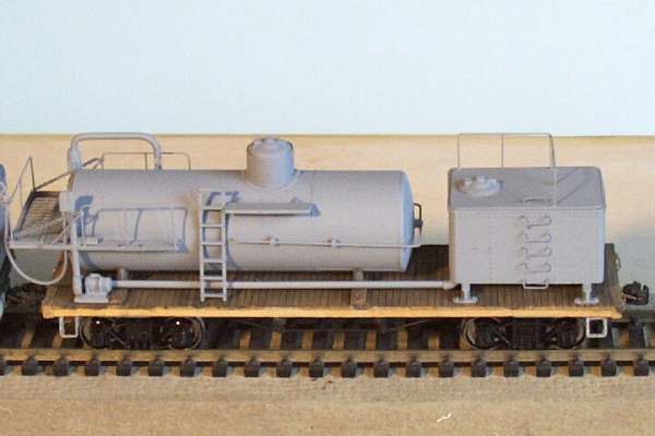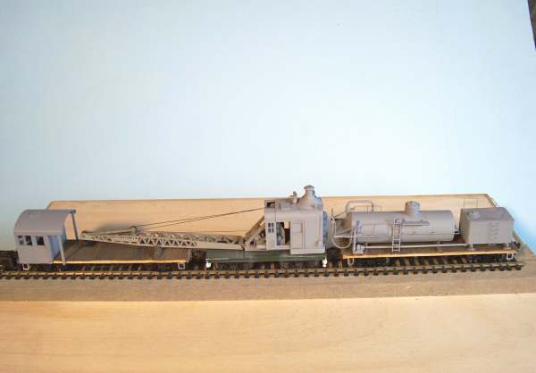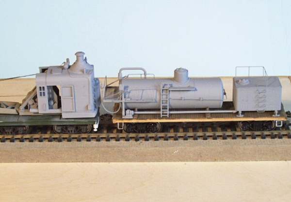 Re: sumpter250's 2010 Spring Bash Challenge - Gary S - 02-16-2010 The more I look at your project, the more I like it. You chose a great subject for the contest... all kinds of freelancing and scratchbuilding to be done. Looking forward to eleven! Re: sumpter250's 2010 Spring Bash Challenge - doctorwayne - 02-16-2010 with Gary: This one's got oodles of opportunities for development and you're making excellent use of them. Wayne Re: sumpter250's 2010 Spring Bash Challenge - viperman - 02-16-2010 Great project! I wouldn't mind having this same equipment for my railroad as some MOW equipment Re: sumpter250's 2010 Spring Bash Challenge - Sumpter250 - 02-16-2010 Well, it's not eleven, it's 14:30 hours, and the batteries are charged, but the background light is too bright, and makes the subject too dark. But,this will have to do for now: I'll try to replace this shot later, got to run now. Re: sumpter250's 2010 Spring Bash Challenge - eightyeightfan1 - 02-16-2010 Looking good! Perhaps you could use heat shrink for hoses. Re: sumpter250's 2010 Spring Bash Challenge - Sumpter250 - 02-17-2010 Heat shrink is a possible, I was also considering the right diameter solder, which might be easier to form into a convincing shape. First, however, I have to conceive and build the structure that the hoses will be "stored" in/on. That's the problem with a project like this.......seeing all the details, and then building them. I'm having second thoughts about those stirrup steps.......count's up to a dozen, if I replace the ones on the flats. Re: sumpter250's 2010 Spring Bash Challenge - Sumpter250 - 02-18-2010 I got a bit more done. the fuel and water lines are in, and attached to their pumps, risers are in, and need support structure before adding the delivery pipe/hose. The platform is modeled down, with tension on the chains.....it is designed to be able to rotate up about 74 degrees to the stored position, but will stay down. In this shot from a slightly higher view, the risers, fuel foreground, and water, background, come up bewteen the water tank and the platform. Because of the design choice for the platform, I decided to move the fuel filler pipe to the back wall of the crane. I'm thinking that fuel will be delivered by hose, and the water by semi-fixed pipe that rotates back out of the way when done....kind of a "water column" kind of thing. All the handrails were set up, ACC'd in place, and then the stanchions were soldered to the rails. The upper attachment of the chain supports were soldered to the forward stanchions, the lower ends Acc'd to the platform "I" beam frame. Re: sumpter250's 2010 Spring Bash Challenge - Sumpter250 - 02-20-2010 Prime Time!!!, well first primer at least, all the different colors were getting hard to take. Now I can see all the mistakes.... :o The water "column" rotates across the tank, and forward to the fill trunk on the back of the crane. I found a fuel nozzle from an N.J.International detail set (two gas pumps) the hose is a piece from a GOW bulb. Here, the crane and tender show the position of the platform w/r to the back of the crane. This shot is all three; Boom flat, Crane,and Tender. and this is the Boom flat, with the modified loco cab. This needs a lot more work,as it has had the least attention so far. I need to think about where and what steps, and handgrabs should be added, and this car gets all the "junk and clutter". Now that all the parts are in primer I can correct the overlooked problems, and add the final details. Then comes the hard part.........the final color!