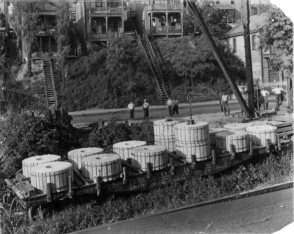 RE: Historic Railroad pictures. - jim currie - 02-20-2019 great series of photos ![]() RE: Historic Railroad pictures. - Charlie B - 03-31-2019 From a batch of slides I recently scanned for a friend. Shared with his permission. The last passenger train to stop in East Palestine, Ohio Sept, 1970. RE: Historic Railroad pictures. - cn nutbar - 03-31-2019 WOW !!!----thanks for sharing Charlie RE: Historic Railroad pictures. - doctorwayne - 03-31-2019 (03-31-2019, 11:30 AM)Charlie B Wrote: ....The last passenger train to stop in East Palestine, Ohio Sept, 1970... I'm guessing that the fireman is checking to make sure that they're still on the rails. Sad to see when one thinks of what was there in Pennsy's heyday. Wayne RE: Historic Railroad pictures. - jim currie - 03-31-2019 (03-31-2019, 11:58 AM)doctorwayne Wrote:(03-31-2019, 11:30 AM)Charlie B Wrote: I'm guessing that the fireman is checking to make sure that they're still on the rails. Sad to see when one thinks of what was there in Pennsy's heyday. Wayne "Glory days well they'll pass you by Glory days in the wink of a young girl's eye Glory days, glory days" Bruce Springsteen great photo though I'm going to use it as wall paper RE: Historic Railroad pictures. - Charlie B - 05-21-2019 Another picture scan from the Shone Collection shows this PRR freight westbound at Walker, Ohio, between East Liverpool and Wellsville, Ohio. The Locomotive is an Atlantic. Walker was a brick and sewer tile plant. My guess is from the late teens, early twenties. There was a station at Walker and even with the huge amount of stack smoke (which apears to be going straight up) this train may be a combination stopped for passengers on the far end Charlie RE: Historic Railroad pictures. - jim currie - 05-22-2019 nice photo . hope the general road foreman don't catch them making that much smoke unless there cleaning the flues. could be ww1 looks like the man in foreground is holding a rifle and there might be another guard mid train. RE: Historic Railroad pictures. - Charlie B - 12-03-2019 Here are a couple more interesting pictures of loads. Pulp stones, used to grind wood pulp for paper. Circa 1920 RE: Historic Railroad pictures. - cn nutbar - 12-04-2019 Charlie---I'm really enjoying these historic photos---so much detail.In the latest shot I'm looking at those houses in the background with those steps from the road---imagine moving day and having to lift all your furniture ![]() RE: Historic Railroad pictures. - ezdays - 12-04-2019 Yeah, those stairs look really scary. It would probably take me three days to go up a flight. Really impressive photos Charlie. I love old photos, maybe because I can still remember some of those things that you've been posting. RE: Historic Railroad pictures. - Charlie B - 12-04-2019 (12-04-2019, 06:04 AM)cn nutbar Wrote: Charlie---I'm really enjoying these historic photos---so much detail.In the latest shot I'm looking at those houses in the background with those steps from the road---imagine moving day and having to lift all your furniture Forget moving day, imagine coming home with a couple bags of groceries and climbing those stairs. East Liverpool wasn't called the city of Hills and Kilns for no reason. The value of homes on hills in ELO is in the very low end, many have just been abandoned because folks want to be able to drive somewhere close. Charlie RE: Historic Railroad pictures. - cn nutbar - 12-04-2019 Imagine coming home late after a few "pops" at the local saloon and climbing those steps---only to realize you're at the wrong house ![]() RE: Historic Railroad pictures. - FiatFan - 12-04-2019 (12-04-2019, 08:34 AM)cn nutbar Wrote: Imagine coming home late after a few "pops" at the local saloon and climbing those steps---only to realize you're at the wrong house My vote for best reply! Tom RE: Historic Railroad pictures. - Charlie B - 02-02-2020 I guess we can learn something new every day. I was scanning some more pictures taken in 1912 and noticed this. The bricks are made for use right up to the rail as the flange way is formed with the brick rather than use rail with a flangeway cast in the rail. Probably nothing new to traction modelers but certainly new to me. Charlie RE: Historic Railroad pictures. - Charlie B - 09-09-2020 I recently bought a box of photos that was in a collection of a fellow that died in 1938. This was the only negative in the collection. The trestle was located in Elkton, Ohio, about 4 miles east of Lisbon, Ohio, on the Pittsburgh Lisbon and Western Railroad. It was torn down in 1943. The photo was taken before 1938 for sure. |