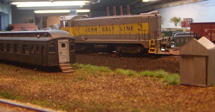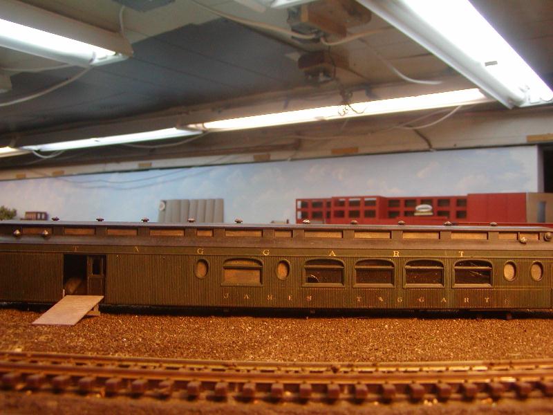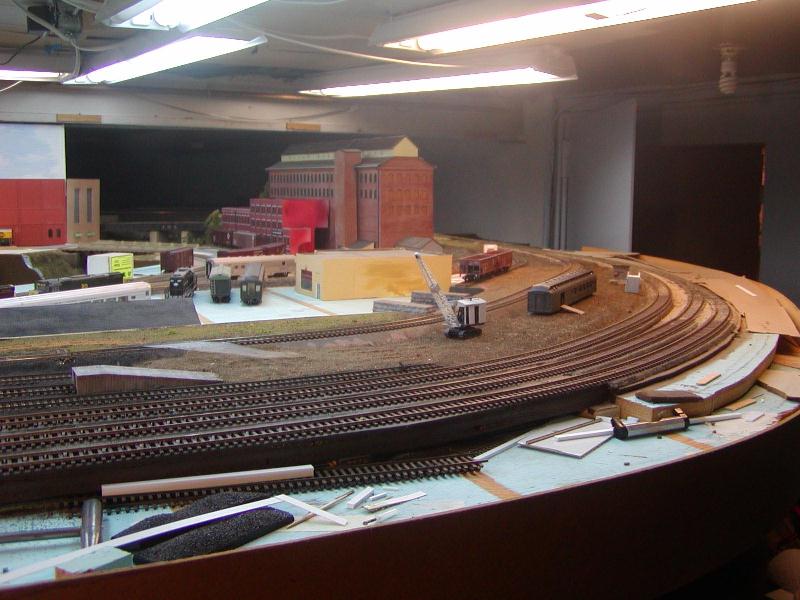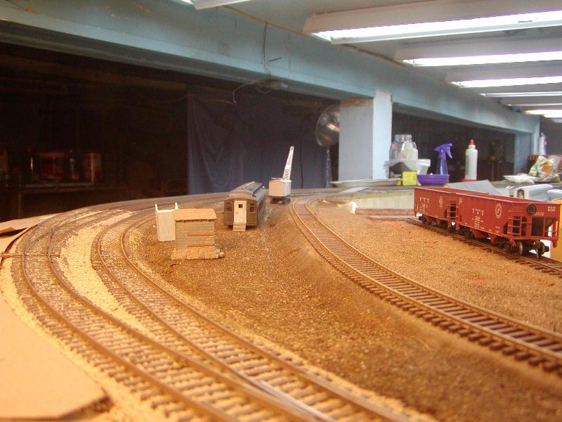 Re: An engine servicing facility for the JGL - tetters - 11-23-2009 Happy to see you were able to get some replacement parts for your crane. It's looking pretty cool so far. What colours are you going to paint it? Re: An engine servicing facility for the JGL - jglfan - 12-07-2009 Thanks Tetters, I really have no idea what color I will wind up painting it. A thorough cleaning and vacuuming of the work bench area failed to turn up the missing part, so I will have to write Jordan again. In the meantime I've been able to spend some time working on the area the crane will work in. My computer crapped out and I got a new one, then couldn't find my disc for MGI Photosuite, so I haven't been able to post any pics till now. Here are two pics from either end of the area. In the first pic, the three foreground tracks will be ballasted with the same ballast you se at far right, which is Buff. The yard tracks are ballasted with cinders, you can see it above the ramp. I'm not certain which of these two ballasts I will use on the track behind the crane and passenger car. The grade crossing could serve as a place to switch ballast color. It seems logical that cinders would be continued. But I wonder which ballast would look best in photos I'd take when the area is done. See next post examples of what I mean, and let me know your thoughts, please! Here is a pic of the ramp Re: An engine servicing facility for the JGL - Gary S - 12-07-2009 Nice photos, JGL. How big is your layout room? Re: An engine servicing facility for the JGL - jglfan - 12-07-2009 I just placed a couple switchers on the track to get an idea of photo angles for future steam shots. Which color ballast do you think would look best? Re: An engine servicing facility for the JGL - tetters - 12-07-2009 Ballast? Hmm...I guess in some ways it all depends on your personal preference. I've always been partial to the light gray or granite type of ballasts because that is what I see used up here in Toronto all the time. However, I've also seen black cinder ballast as well so I could go for either. I used a reddish brown for the sidings on my last layout and didn't like it. I like the suggestion I've read in a few magazines that says you should ballast your mainline with one colour preferably a light colour to highlight it and then do your sidings and spurs in a darker colour. I'm sure whatever colour you choose though it will look great. Re: An engine servicing facility for the JGL - LynnB - 12-08-2009 Nice work on the layout and the Jordan crane is looking good , I have a couple dozen jordan kits to build including 2 of these shovels. Re: An engine servicing facility for the JGL - Puddlejumper - 12-08-2009 I just read through this thread and, wow, I have really been missing out! This entire thread is just incredible. And in the words of my generation "Dude, your layout is sick!" I think the entire area is well planned, and I think your corporate headquarters building is exceptional. If you don't mind one little criticism, I thought the guardrail by the road side appeared about a foot too tall. Of course, this may be a difference in era (all I've seen is modern style guardrails) or even locale. I am extremely impressed with all the work you have showcased in this thread and definitely believe your modeling skills to be among the best I have seen. As for the ballast, In my honest opinion, any track that is not considered main line would likely have a cheaper grade of ballast. I think cinders would look very appropriate for that MOW/loading dock area. Thanks for sharing your work. I have bookmarked this thread for future reference. Re: An engine servicing facility for the JGL - jglfan - 12-09-2009 Hi Gary, I didn't see your post till now, it got sandwiched between the posts I was making. The room is 25'x25', the layout occupies 19'x25', with the balance housing the furnace, oil tank and water heater. Thanks Lynn, the Jordan crane kit (same as the shovel kit) has some tedious fitting to do but is well designed and fun to work on. Puddlejumper, thanks for the compliments, I regard my skills as middle of the road. There are some much better modelers here. One of the reasons I decided to swallow my pride and show work in process (rather than just finished models) was to show others that most anyone can obtain similar results. By asking lots of questions often alternate methods were suggested, allowing all to learn, hopefully. You are absolutely correct in your assessment of the guard rail height! I was aware the posts needed trimming but just haven't gotten around to it, figuring I would do so when I also get around to detailing and painting the roof of the corp bldg. Right now the guard rail functions more as a decapitation device! Thanks to all for their thoughts on ballast. I knew cinder would be the most appropriate choice, I was just wondering if the buff ballast used on the nearby main, which the track in question joins nearby, might provide better contrast when i finish the area and take photos of steam there. The track in effect is a lead from the main to the yard runaround track and engine facility. The grade crossing provides a handy spot to change from one to the other. I still haven't decided. Just for giggles, here is a shot of the James Taggart relegated to mow storage. Re: An engine servicing facility for the JGL - Puddlejumper - 12-10-2009 Wow, your layout occupies a smaller space than I would have expected. It is encouraging to see what you could accomplish in 19x25, since the space I have is only 19x20. Dave Re: An engine servicing facility for the JGL - doctorwayne - 12-10-2009 In photos, Gary's excellent layout often reminded me of a well-done club-sized operation. After having seen it in person, I can attest that I saw nothing that would dispel that impression. Excellent workmanship and even more impressive when seen first-hand. Wayne Re: An engine servicing facility for the JGL - jglfan - 12-23-2009 Hi friends, I haven't done much 