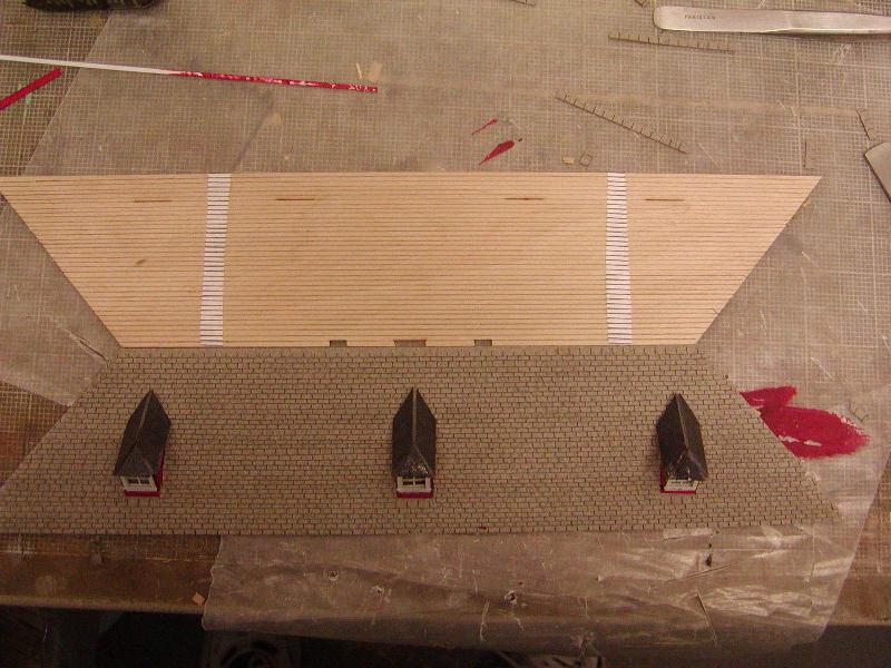 Re: An engine servicing facility for the JGL - Russ Bellinis - 12-28-2009 gtcarl, just to continue the hijack for one more post, why don't you start a thread in the "Engineer's Technical Workshop" about your electrical problems with as much information as you can supply. Maybe some of us can help you out with the troubleshooting. Re: An engine servicing facility for the JGL - jglfan - 01-14-2010 Hello everyone, time for an update. Thanks for posting those shots Ed, I certainly don't mind, but think sometimes I post pics of those locos too often. I've been working on the passenger station kit and really enjoying it. Till now, that is, as applying the roofing shingles has been tedious. Doing the main roofs with the strips of shingles wasn't too bad, but took hours. It is cutting and fitting around the dormers and the dormers themselves that get tedious. I am glad that I did not follow the instructions which called for assembling the roof pieces, adding the dormers and gluing to the model prior to shingling. Instead I am working on each of the main roof sections flat on my workbench, and will only have to apply the one by one shingles needed for the ridge lines between sections on to the assembled model. Also, after roofing the first section using the supplied "spacers" I decided to draw lines in between the spacers on the next section, to make it easier to follow the line and stay straight. Here is a pic of the station as it is so far, sitting approximately where it will go. I had shingled that lower roof (still needs the individual shingles applied to ridge lines) in place and that is why I did the upper roof piece you see in the photo on my workbench instead. Here is a shot of the two long main roof sections, the one was taped to the model in the prior photo, you see how I drew the lines for applying the shingles on the other. The slots are for the chimneys and cupola. I am not going to use the cupola, instead I'd like to find a large weathervane to put there. If anyone knows of a nice one, please let me know. And here is a closeup of the dormer with shingles. I am concerned about the long time ability of these peel and stick shingles to stay adhered to the roof, as my basement is very dry now, in heating season. But it gets very damp in the summer, even running a dehumidifier. Can anyone suggest a way to use additional glue to "seal" the shingles in place? Either a clear flat spray perhaps, or a wash of some kind? I was thinking dull cote may work but perhaps someone has a better idea. Re: An engine servicing facility for the JGL - Gary S - 01-14-2010 The loco photos are I M P R E S S I V E to say the least. WOW! I agree with sgtcarl1 that the realism is fantastic. Especially the third photo. Re: An engine servicing facility for the JGL - tetters - 01-14-2010 I used laser cut paper shingles from North Eastern and used double sided carpenter tape to stick them on. I used Dullcote on them too to help seal it ...i guess... however it created a white haze on them when applied cause my green shingles to turn greyish green. So I don't know if Dullcote is what you want to use here. Re: An engine servicing facility for the JGL - Sumpter250 - 01-14-2010 This photo is of the display model I did for GCLaser, the shingles are laser cut strips, glued on with carpenters yellow glue (titebond, Elmers, etc.). Yes, the fitting around dormers, chimneys, etc., is tedious, because not only do the strips have to fit, but the shingle overlap has to be maintained. I'm about to build one of these for myself, and I intend to "Cedar" shingle the whole thing, roof, and siding. I will be using individual cut paper shingles, and will do as you did, mark the courses, and apply the majority of the shingles before assembling the model. With individual shingles, the "around things" tedium will be less, but will be made up for in the overall tedium of "one at a time". It's kind of like doing the whole thing in "ridge caps", which, by the way, you did very nicely! Re: An engine servicing facility for the JGL - jglfan - 01-14-2010 Thanks for the heads up on the Dulcote Tetters! I'll test on some leftover shingles after I finish. Thanks for the kind words Pete. I don't envy you the job ahead! But it should look great. It seems you both use laser cut paper, which is what I have I would guess. I don't know whose product it is, pic is below. I assume Bollinger buys commercially available shingles to put in their kit. They are peel and stick, it sounds like the ones you've used are not? I am not concerned with adhesive quality on the rows of shingles, but rather with the ridge cap pieces. After removing the backing for each square, I fold it in half over the back of my knife before putting in place on the model. Still, the bend in the shingle makes for less than full contact so the adhesive seems inadaquate for long term reliability. I also think they appear too heavy and wondered if cutting some from paper might be better. But then I'd need to color them to match, as I like the color of the shingles. So I went with the ones supplied, and just need to apply something to help prevent shingles falling off. Perhaps when the model is complete and I weather it, I can wet the shingles so they are absorbent and apply a thinned black wash with glue along each side of the ridge caps. The tops of the ridge caps would get only the bit of color the shingle absorbs and draws in, so they will be lighter as they ought to be, the black creates a bit of shadow at shingle edge, and the thinned glue should help. What do you think? |