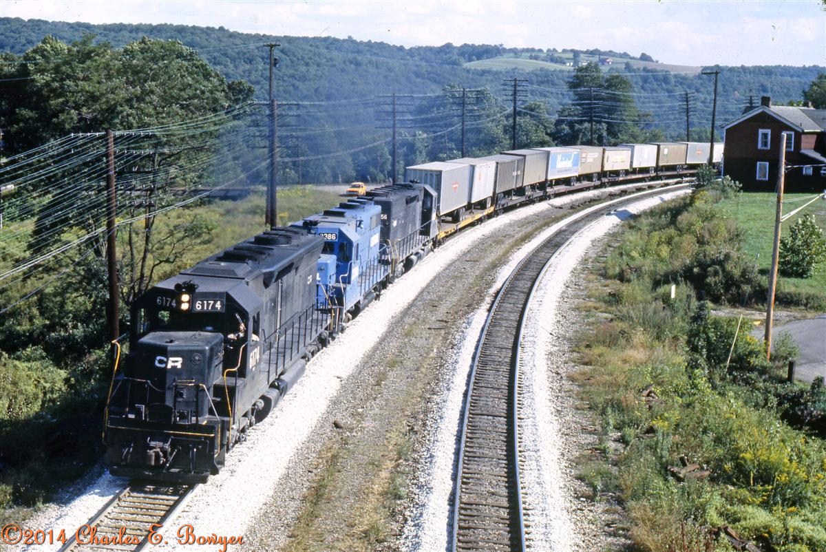 RE: Trains on this day in the past: - Charlie B - 09-08-2019 9/8/2013 At Enon Valley, Pa. RE: Trains on this day in the past: - bdw9535 - 09-08-2019 Southern RR of NJ's LV 414 moving stone cars thru Winslow, NJ September 1996. Bruce RE: Trains on this day in the past: - Charlie B - 09-09-2019 I don't get very excited over Amtrak but I caught this one 6 years ago. it was "Station to Station" what ever that was. RE: Trains on this day in the past: - doctorwayne - 09-09-2019 Wow, that's some train! The CNR bought some of those full length domes and the ex-Hiawatha tail-end cars, too, but Transport Canada later outlawed the latter cars due to the lack of a suitable emergency exit. CN also introduced cars like this... ![]() ....in the late '50s to support their Car-Go-Rail plan, which allowed passengers on long-distance trains to take their automobiles with them. They came in both the 75' version shown (a modified Bachmann car) or as 57'-ers. Many of these cars were later sold to Auto-Train. Oddly, when creating this post, I could find no direct on-line reference to CN's Car-Go-Rail programme, although I did get a hit for "Did you mean Cargo-Rail?", with absolutely no information. Wayne RE: Trains on this day in the past: - Charlie B - 09-10-2019 9/10/2015, NS local (C10) at East Liverpool, Ohio. (Bayard) RE: Trains on this day in the past: - csiguy1970 - 09-10-2019 1069 East through Jeanette, Pennsylvania on 9-10-17. Todd RE: Trains on this day in the past: - Charlie B - 09-11-2019 Westbound at Homewood Junction. 9/11/1977 RE: Trains on this day in the past: - bdw9535 - 09-11-2019 Camden, NJ, 9/11/14. Bruce RE: Trains on this day in the past: - Charlie B - 09-12-2019 9/12/2014 New Castle, Pa. RE: Trains on this day in the past: - Charlie B - 09-13-2019 Running east on track two, East Palestine, Ohio 9/13/2015 RE: Trains on this day in the past: - cn nutbar - 09-13-2019 13/09/2016 RE: Trains on this day in the past: - Charlie B - 09-14-2019 Conrail E8 heading up the Broadway Limited 9/14/1977 Highland (Summit)cut. RE: Trains on this day in the past: - cn nutbar - 09-14-2019 14/09/2016 RE: Trains on this day in the past: - Charlie B - 09-15-2019 A Friday ferry move of the 2101 had us in Connellsville, Pa. on 9/15/1978. I caught this train leaving the yard (westbound). RE: Trains on this day in the past: - cn nutbar - 09-16-2019 16/09/2014---Hamilton West |