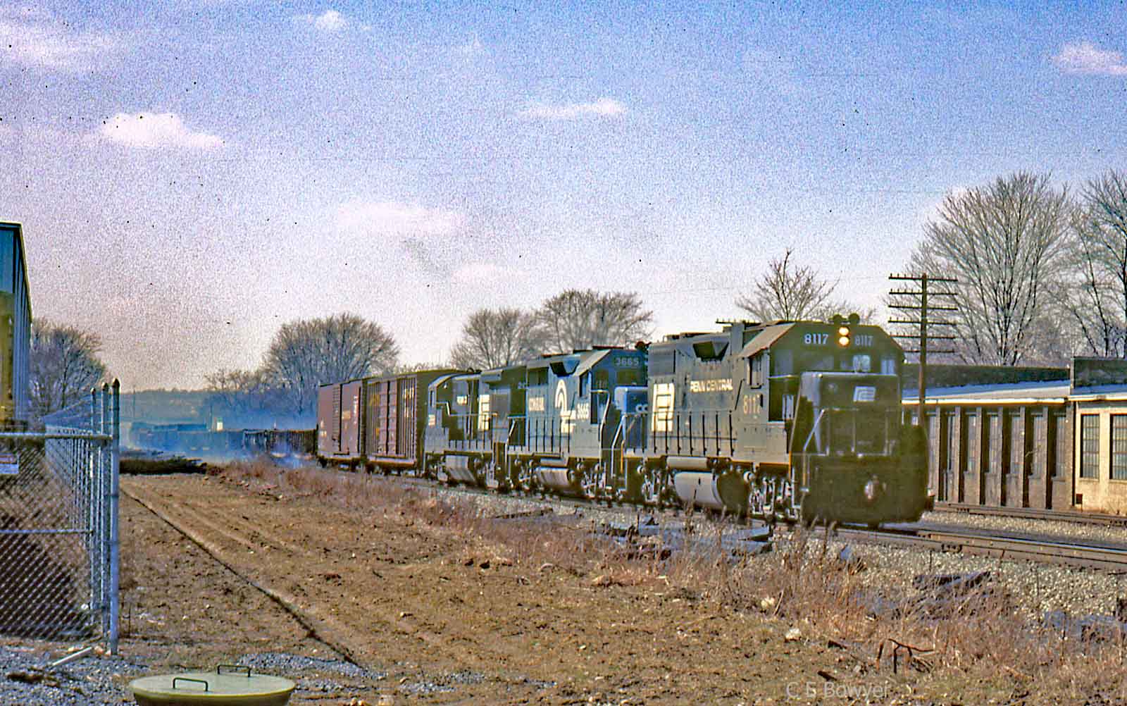 RE: Trains on this day in the past: - Charlie B - 03-01-2021 Eastbound Conrail manifest with CNW power. East Palestine, Ohio. March 1977. RE: Trains on this day in the past: - cn nutbar - 03-01-2021 3/1/2017 RE: Trains on this day in the past: - cn nutbar - 03-03-2021 3/3/2016 RE: Trains on this day in the past: - bdw9535 - 03-03-2021 Winchester & Western at Vineland, NJ, 3/3/09. Bruce RE: Trains on this day in the past: - Charlie B - 03-03-2021 3/3/1979 pacing the Crescent northbound. RE: Trains on this day in the past: - doctorwayne - 03-03-2021 Nice to have a spot where the road parallels the track, and a driver who can maintain the pace. However, if I hadn't seen that picture, I'd certainly question that weathering job if it were on an HO scale model E-unit...who'da thunk that you'd get bow-wave type weathering that pronounced, and from both sets of trucks, too! Wayne RE: Trains on this day in the past: - Charlie B - 03-03-2021 (03-03-2021, 04:13 PM)doctorwayne Wrote: Nice to have a spot where the road parallels the track, and a driver who can maintain the pace. The story behind this photo starts with a move on the Southern Railroad by the Royal Hudson, 2839. We were waiting for it to show southbound when we got a heads-up that they were waiting for people that were on a late arriving Crescent. There is a nice stretch along here so we proceeded to the other end of the straight stretch hoping to pace the Crescent which had just came under Amtraks wings but was still Southern powered. The video is great but I never got a copy, and the fellow that took the video just recently passed away. We got to 70 MPH and the engineers side had 3 people watching us. When the 2839 showed up we did the same thing in reverse but at an even faster pace because they removed the speed limit (or turned a blind eye) trying to gain back some time. Those were wild and crazy days. RE: Trains on this day in the past: - bdw9535 - 03-04-2021 Winchester and Western running thru Millville, NJ on 3/4/16. Bruce RE: Trains on this day in the past: - Charlie B - 03-04-2021 Good Morning. Bruce, that is a great photo. My contribution for the day. 3/4/1978, Amtrak train 41 at New Waterford, Ohio. RE: Trains on this day in the past: - Charlie B - 03-05-2021 Leaving the Chessie New Castle yard. March 1979 RE: Trains on this day in the past: - bdw9535 - 03-05-2021 Thanks Charlie, I'm still amazed by your photo collection. Winslow, NJ, March 1993. Bruce RE: Trains on this day in the past: - Charlie B - 03-06-2021 We seldom see brake shoe smoke today with the high horsepower dynamic braking locomotives but 44 years ago the air brake was the main braking factor for a train. The brakes are releasing now but an application was made 2 miles back to slow down for the curves and down hill grade as the train entered East Palestine from the west. March 6, 1977. RE: Trains on this day in the past: - cn nutbar - 03-07-2021 3/7/2014---Kinnear Yard. RE: Trains on this day in the past: - cn nutbar - 03-08-2021 3/8/2016---Bayview RE: Trains on this day in the past: - Charlie B - 03-08-2021 3/8/2016. East Palestine, Ohio |