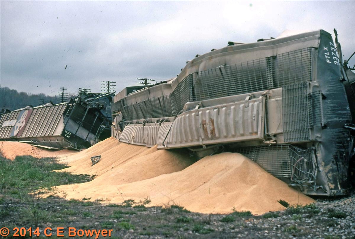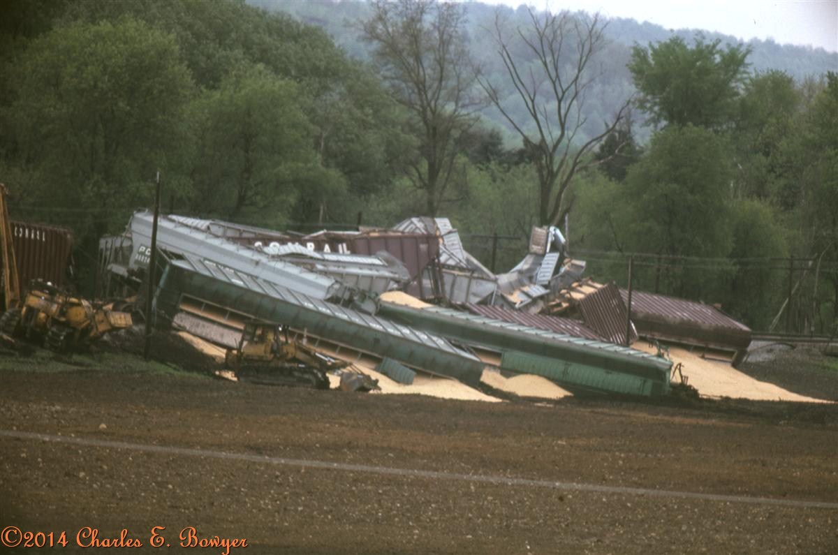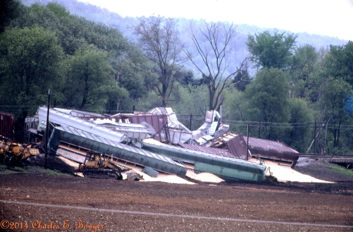 Re: Go get the wrecker - Charlie B - 05-04-2014 Hay's block station was located just west of New Galilee, Pa. It was a favorite wreckreational area for the railroad in the 70's. This one was in May, 1976 Charlie Re: Go get the wrecker - Charlie B - 05-04-2014 continuing with the one from May of 76. Sorry about the quality but the instamatic was the best I had at this time. (repaired post 6/21/2021) Charlie Re: Go get the wrecker - Charlie B - 05-04-2014 Same place, different day. May, 1978. Charlie Re: Go get the wrecker - Charlie B - 05-04-2014 And another grain train bites the dust in October the same year. This was getting monotonous. Charlie Re: Go get the wrecker - Charlie B - 05-04-2014 I actually missed a couple but once again in May 1979 the crossover ate another grain train. Charlie Re: Go get the wrecker - e-paw - 05-04-2014 WOW did the railroad ever stop feeding that crossover grain cars ??? It must have been very hungry.