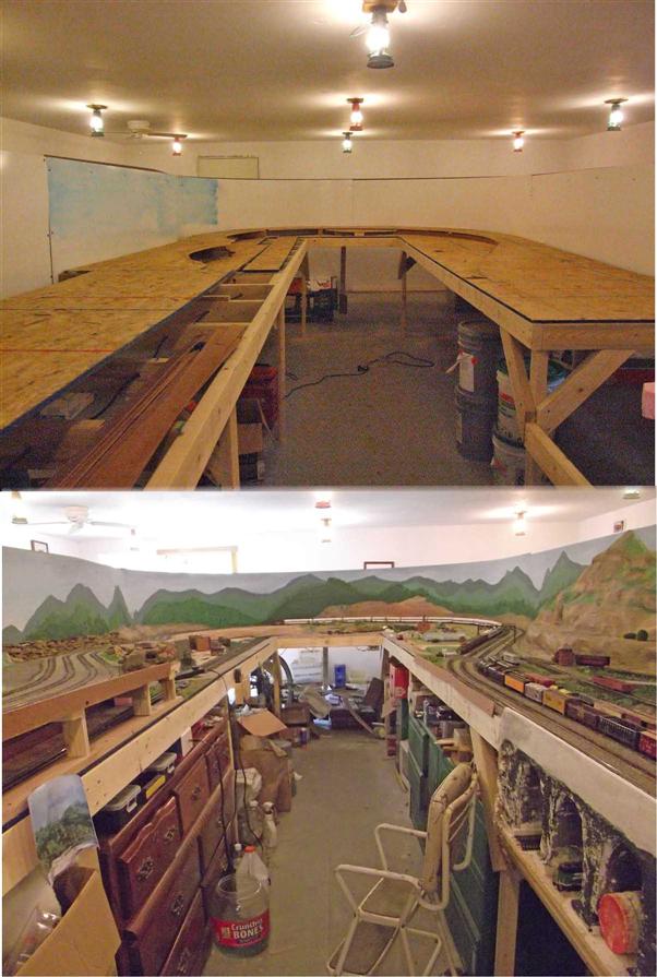 Re: Charlie b's layout - Charlie B - 06-19-2011 Ralph Wrote:VERY effective Charlie! The waterfall looks like white churning water to me!Thanks Ralph, but this is the easiest thing I've done yet. We will see what it looks like when it is done under the trestle. I hope to see the PC covered hopper 888888 pulling into your new grain facility soon. Charlie Re: Charlie b's layout - Ralph - 06-20-2011 Charlie B Wrote:Ralph Wrote:VERY effective Charlie! The waterfall looks like white churning water to me!Thanks Ralph, but this is the easiest thing I've done yet. We will see what it looks like when it is done under the trestle. That would be an easy car to decal! ![]() Re: Charlie b's layout - Charlie B - 07-13-2011 Time for a little picture update, nothing real exciting as far as layout work, just filling in some scenery and installing a few decoders. Here is a picture comparing where I was exactly one year ago today to one of the same area I took today. I am content. Many thanks to all of you for the encouragement you have given me. It has kept me at it, and other than upkeep around the place, It is my only job...I love retirement ![]() Here are a couple more of the same area. Just different angles. Charlie Re: Charlie b's layout - Gary S - 07-15-2011 I'm ready to retire too! Everything is looking good, Charlie. Re: Charlie b's layout - nachoman - 07-15-2011 That's a lot of good work in a year. I bet the visitors to your house are anxious to see the progress every time they come over. Re: Charlie b's layout - Charlie B - 10-02-2011 Hello group. Time for a little update. I have been working on small things and it is coming together. Here is an overall view of the center of the layout. I have been making and adding ground foam, adding some trees and grass, and working on the little things like crossing protection, roads, and a few buildings. Still years of fun left, but I'm really looking forward to the time I can get to really doing the small details. I think this winter I'll work on the signal system and install some more decoders. I have been wasting too much time running trains. ![]() My wife and I had a party for all our friends that are involved with the Samoyeds. We had 25 people and 20 dogs in attendance. The farthest guest was from Sydney. We had folks from all over the eastern half of the US, and one lady from Kansas City, Mo. I spent a lot of time preparing for this party, and we had a great time. I was requested to run trains for them so everyone took pictures and had a great time. It is so much fun to awe folks that aren't in the hobby. They aren't jaded like we are. ( ![]() ![]() Charlie Re: Charlie b's layout - Will_Annand - 10-02-2011 The layout looks great, nicely done Charles. Re: Charlie b's layout - Sumpter250 - 10-02-2011 Charlie wrote: " It is so much fun to awe folks that aren't in the hobby. They aren't jaded like we are. ( ![]() I may be a bit green about the edges, but I'm not jaded ---. . . . . . . . . --- yet ![]() ![]() ![]() ![]() Great looking layout !! Re: Charlie b's layout - doctorwayne - 10-02-2011 Great progress, Charlie, but it makes me feel slothful by comparison. ![]() Wayne Re: Charlie b's layout - faraway - 10-02-2011 Charlie B Wrote:...Time for a little update. I have been working on small things... Ok, that are small things (in Ohio). I will never ask for the big things.... ![]() Re: Charlie b's layout - Tyson Rayles - 10-02-2011 Very nice! Re: Charlie b's layout - cn nutbar - 10-03-2011 Charlie---your train room gets better and better as time goes on.I really like the skirting that you've added under the layout---a great way to hide all that extra stuff that we all seem to accumulate---I'm planning on using the same idea on my layout (eventually). Re: Charlie b's layout - Charlie B - 10-03-2011 The skirting actually became a work saver as well as a stimulant to get something done. We had rain all day today so I got to work in the train room. Over the last week I made and installed 136 feet of 2 1/2 inch shelves and laid all my old brass sectional track that has accumulated on them, then I was able to get most of my "vintage" (non runable junk I can't bare to part with ![]() So with the rain today, I mixed several batches of Durabond and worked on a cliff that runs between the main and the short line railroad below it. So a little more is accomplished. Charlie Re: Charlie b's layout - Tyson Rayles - 10-04-2011 Looking good Charlie, really dwarfs my puny little 6' by 28" postage stamp sized layout! ![]() Re: Charlie b's layout - Charlie B - 10-10-2011 I was able to clear the west side of the layout and I got the sky painted on the backdrops. I am going to have to take a ride and find some hillside village that I can use to put on the back drop before I do the town scene that will run around the inside of the curve. I haven't been able to find a scene that I think suitable for my purpose. I might have to do some railfanning while I'm at it. ![]() Charlie |