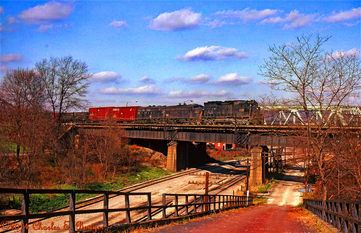 RE: Trains on this day in the past: - Charlie B - 11-15-2021 November, 1978. A very dirty GM50 (GP40-2 to celebrate GM's 50th year of building locomotives)leads a manifest freight westbound at West Pittsburgh, Pa, on the New Castle yard lead off the P&W. RE: Trains on this day in the past: - Charlie B - 11-16-2021 November, 1978. Eastbound truck train under the Brookdale Avenue Bridge in East Palestine, Ohio. Two years and 7 months after Conrail was formed number 2 main track is getting much needed welded rail. Photo by my son Richard Ross Bowyer. RE: Trains on this day in the past: - bdw9535 - 11-16-2021 Conrail's CA-11 at Carneys Point, NJ, 11/16/15. Bruce RE: Trains on this day in the past: - bdw9535 - 11-17-2021 Pennsauken, NJ, 11/17/09. Bruce RE: Trains on this day in the past: - Charlie B - 11-18-2021 November, 1978 westbound at Pleasant Drive, East Palestine, Ohio. RE: Trains on this day in the past: - bdw9535 - 11-18-2021 Winchester and Western at Millville, NJ, 11/18/09. Bruce RE: Trains on this day in the past: - Charlie B - 11-19-2021 November 19, 1977. Eastbound crossing over the P&LE at Beaver Falls, Pa. RE: Trains on this day in the past: - FiatFan - 11-20-2021 On this, the 8th anniversary of this thread, I would like to take a moment to thank all those who have posted over the years. It is truly a wonderful look into the past. Thank you all. Tom RE: Trains on this day in the past: - Charlie B - 11-20-2021 Climbing out of East Palestine, Ohio. Westbound in November, 1977. RE: Trains on this day in the past: - doctorwayne - 11-20-2021 I certainly second your comment, Tom. Those older photos remind us of the diversity of railroads that we saw in the past if we happened to be trackside. While the trains of today are impressive in their own way, watching the various road names in the past was a lesson in both the history and geography of North America. That's one of the main reasons why I chose to model the late '30s. Wayne RE: Trains on this day in the past: - cn nutbar - 11-21-2021 This certainly is my favourite thread on BigBlue---I always look forward to everyone's great contributions,especially the older pictures which certainly bring back many fond memories. RE: Trains on this day in the past: - Charlie B - 11-21-2021 Back when the end of the train had a caboose and crew. November, 1978 at New Waterford, Ohio. RE: Trains on this day in the past: - Charlie B - 11-22-2021 Eastbound leaving the Chessie yard at New Castle, Pa. November, 1978 RE: Trains on this day in the past: - Charlie B - 11-23-2021 November, 1977. A westbound truck train at MP 48.8 on the Fort Wayne line, just east of East Palestine, Ohio. RE: Trains on this day in the past: - bdw9535 - 11-23-2021 Robideau Distribution Center, Delaware Ave, Phila., PA, November 1993. Bruce |