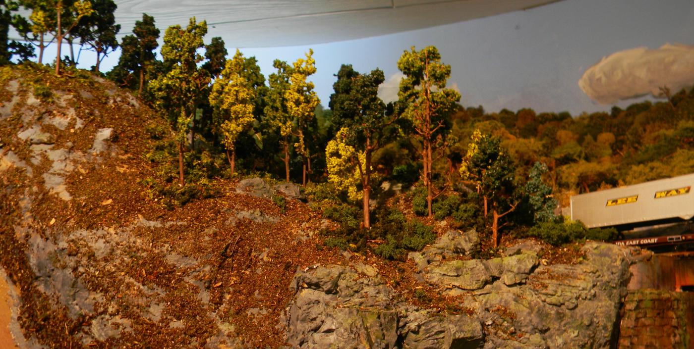 RE: Rainbows in the Lehigh Valley Gorge - TMo - 09-06-2025 Mo' trees... mo' trees... I lose count how many I make.... Good activity while sorta watching a football game. RE: Rainbows in the Lehigh Valley Gorge - TMo - 09-08-2025 I'd been running this consist headed by my Intermountain/Athearn kluge SD40-2 for a few days now and things were passing by that switch just fine.... until they weren't. Identical derailments through the turnout. Time to get out my calibrated fingernail and check for gunk... Gunk found and removed. It's quite amazing how well plastic, metal, dust and dirt accumulate just in the wrong spots. Here's that consist in action crossing the Lehigh at Penn Haven Junction. The C628 is a Stewart, the C424 is an Atlas yellow box DCC mod. Tree construction and installation continues. With the limited space available and the flattening that the camera lens accomplishes, it's tough to get an overall shot of progress with my camera, which is a little frustrating - the end result with the human eye is much better. The shot below was blind, placing the camera against the backdrop and taking a bunch of shots. Thank God for digital media.... The dappled "sunlight" coming through the trees lends itself to some interesting potential photos... It's tough maneuvering my big camera in between the trees though. Makes me think about looking into a flexible inspection camera... RE: Rainbows in the Lehigh Valley Gorge - LiveSteamer - 09-08-2025 Great photo's. It does happen where stuff accumulates and you don't realize it until something happens. Glad you was able to figure it out and get it fixed. RE: Rainbows in the Lehigh Valley Gorge - tompm - 09-10-2025 Nice! The shots between the foliage are very realistic and cool. RE: Rainbows in the Lehigh Valley Gorge - ngauger - 09-11-2025 Great shots! The scenery is beautiful! RE: Rainbows in the Lehigh Valley Gorge - TMo - 09-11-2025 Thanks to you all - you're helping me push through and try to finish this section with the many kind words. Prior to tree installation I've been installing underbrush on top of the "brown and green stuff" which I applied months ago. The underbrush is nothing more than 3 different varieties of either Woodland Scenics Forest Blend Underbrush, or Super Turf Texture Foliage. I put down some strips of full strength white glue first, shake some underbrush in the area and push it into the glue, and then dose the whole thing with diluted white glue. Ready for trees.... rinse and repeat.... RE: Rainbows in the Lehigh Valley Gorge - TMo - 09-12-2025 Made it to the peak of the hill, but still quite a few more trees to build and install before I get to the river running under the bridge. I don't know if I'll get there this weekend, but the fun continues... I did page back and found out I started the project building this foreground at the end of January! How time flies. RE: Rainbows in the Lehigh Valley Gorge - Charlie B - 09-12-2025 Todd, When you get time would you do qa tutorial thread on how you make trees. They are A1 and I would like to see how you do them. You are a man that relly makes a mole hill look like a Pennsylvania mountain.   ![]() Charlie RE: Rainbows in the Lehigh Valley Gorge - ngauger - 09-13-2025 Todd If you do decide to do a tutorial do it in this section with the rest of the great subjects ![]() https://bigbluetrains.com/forumdisplay.php?fid=44 RE: Rainbows in the Lehigh Valley Gorge - TMo - 09-13-2025 Consider it .... Started! Shouldn't take me too long because there's really not a whole lot to the method of my madness after years of trial and....error. RE: Rainbows in the Lehigh Valley Gorge - TMo - 09-14-2025 Well, other stuff interfered with tree construction and planting, but I did get a little done while half watching the Eagles/Chiefs game. Here's a shot from the bridge side: ...and here's all that is remaining: RE: Rainbows in the Lehigh Valley Gorge - TMo - 09-14-2025 Allright, I'll beat you all to the punch.... That does look like a face on the rock face! It was NOT an intentional Mt. Rushmore! RE: Rainbows in the Lehigh Valley Gorge - TMo - 09-21-2025 Not much progress or good news to report this week. Decided to run my TOFC D&H Apollo this week - it's been problematic lately and I wanted to figure out the reasons for the problems. It's a long train with long cars on marginal curves for them and I was running into an issue when the locomotive consist was headed back downhill out of a curve pulling the rest of the train coming up the slope. The extra strain was transferring to the first TOFC flats - I was getting some bucking that led to derailments and tossing of trailers into the Lehigh. Turns out my Athearn Genesis GP39-2 was only pulling sporadically - running....not.... running...not.... Ran it by itself and consisted with another locomotive after checking everything over. Didn't get better - in fact it ended up with a hot and non-functional DCC decoder (21-pin type). New one has been ordered and I'll re-double check wiring in the meantime. I did some prep work - underbrush for more trees. I might get to build and install some trees this evening if I can get the bathrooms cleaned. RE: Rainbows in the Lehigh Valley Gorge - TMo - 09-21-2025 Well, a couple hours on the Mo' Tree Express after I got those bathrooms taken care of.... RE: Rainbows in the Lehigh Valley Gorge - Charlie B - 09-21-2025 Now the mow crew will have to cut those darned trees so the railfans can take pictures. Charlie  |