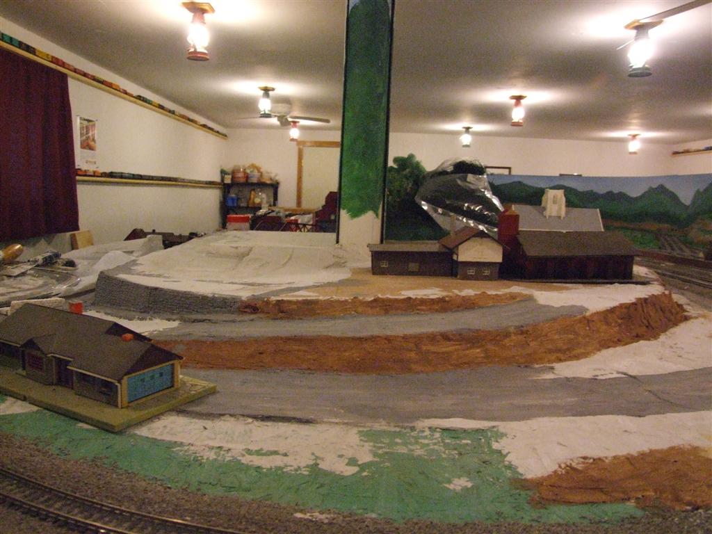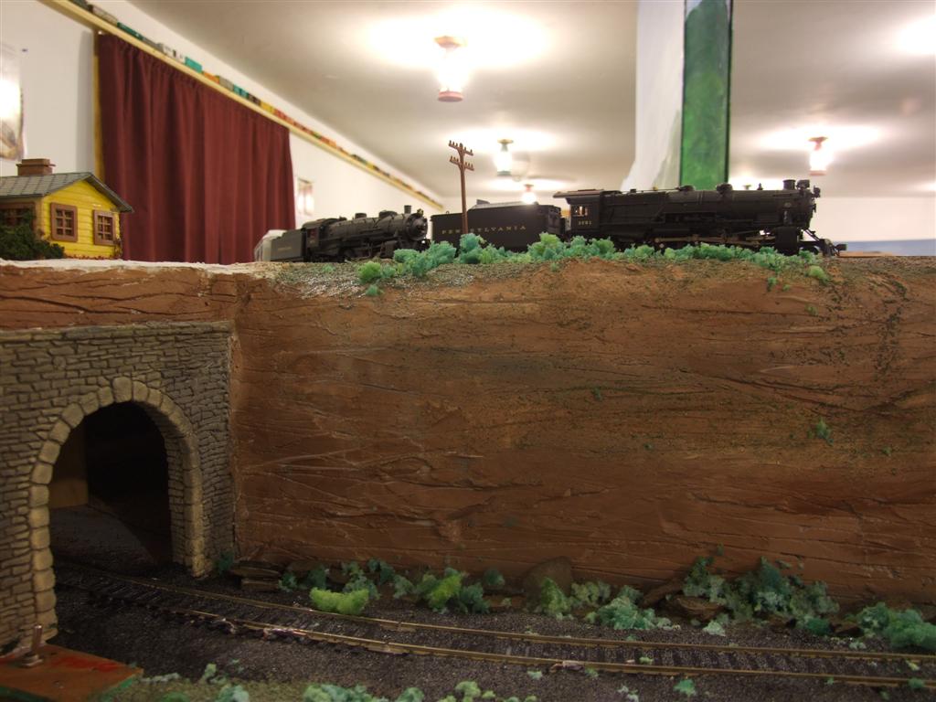 Re: Charlie b's layout - Charlie B - 01-28-2012 I finally got around to doing a little video today. <!-- m --><a class="postlink" href="http://youtu.be/p9iNWDvgRxY">http://youtu.be/p9iNWDvgRxY</a><!-- m --> It's been a rough two months for us here but the sun is starting to shine in our souls again so soon to be up and at em. I started building some P2K Mather stock car kits last week and have got 12 put together and running in a week. 10 more to go. They really keep your mind occupied Charlie Re: Charlie b's layout - Ralph - 01-28-2012 Charlie, great to see you posting about your layout again! I'm also glad to hear that things are brigthening for you. Your video really conveys the length of your mainline. Some of those scenes of long passenger and freight trains look like they go off in the distance for ever! ![]() Ralph Re: Charlie b's layout - Tyson Rayles - 01-28-2012 Glad to hear things are looking up for you Charlie ! Re: Charlie b's layout - cn nutbar - 01-29-2012 Charlie---it's great to have you back.I watched the video---twice---almost as good as being there---very impressive my friend ![]() Re: Charlie b's layout - sailormatlac - 01-29-2012 Welcome back Charlie. I enjoyed the video. 22 mathers stock car!! Congrats! And I was fed up after only one! ![]() Matt Re: Charlie b's layout - Charlie B - 01-30-2012 I did a little work on a little area I am going to call Tafftown, which will be a little bedroom community from the early 50's with a few small modern type houses. I carved the stairs and am leveling the foundations with Durabond 90. Overall there should be room for 10 or 12 homes as well as a little neighborhood store. I also did some more brush work, so all in all a pretty good day. Now about 4 days drying time and I'll see what I have. Charlie Re: Charlie b's layout - doctorwayne - 01-30-2012 Charlie B Wrote:I also did some more brush work, so all in all a pretty good day. I'll say! ![]() Wayne Re: Charlie b's layout - Tyson Rayles - 01-30-2012 Looking good Charlie ! Re: Charlie b's layout - Charlie B - 01-31-2012 A great day weather wise today, I opened the doors to let the heat into the train room and didn't need to turn any heat on. I did some more work on Tafftown and put the scene back together around the curve. Charlie And a flyover shot. Re: Charlie b's layout - doctorwayne - 01-31-2012 Looks like Barney's in your area, Charlie. ![]() ![]() Wayne Re: Charlie b's layout - Charlie B - 02-01-2012 The overhead was a "luck" shot, camera on tri-pod to full length, 10 second delay on shutter, click and hold over the head and to the middle of the layout. It only took 3 shots to hit the "target" ![]() Re: Charlie b's layout - Tyson Rayles - 02-01-2012 Very nice ! ![]() Re: Charlie b's layout - Charlie B - 02-02-2012 "Railcop" came over today and built a fire under me. There was an area that is one of the first things you see when you open the door that was my catch all for miscellanious tool, empty boxes, bottles, and what ever I didn't happen to want to put away, so we moved everything off that area and commenced building a cliff face and installing a tunnel portal. After the plaster set I did some paint work and got things looking pretty good. I'm running out of places to put things. ![]() Charlie Re: Charlie b's layout - Ralph - 02-02-2012 Great progress!!!! Good to get to work on that "catch all" area especially if its your first view of the layout. That will be motivating! ![]() Re: Charlie b's layout - tomustang - 02-02-2012 Always enjoy watching your progress, keep up the good work Charlie! |