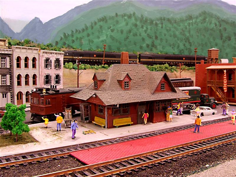 Re: Charlie b's layout - doctorwayne - 03-29-2012 I enjoyed the video Charlie, and continue to be amazed by the speed at which you continue to add scenes to the layout. ![]() ![]() Wayne Re: Charlie b's layout - Ralph - 03-30-2012 ![]() I thoroughly enjoyed watching those loooooong trains behind huge power like those Centepedes! I wasn't alone either. As soon as my cat Lucy saw the movment on the screen she had to check it out. Lucy's become quite the fan of railroad videos lately. She tried to paw at that string of three cabooses in your last shot. ![]() ![]() Great work Charlie!!! Your layout runs so well and looks terrific! ![]() Re: Charlie b's layout - Charlie B - 03-30-2012 I think maybe she was watching for a mouse to come out of the tunnel. ![]() Re: Charlie b's layout - cn nutbar - 03-30-2012 What a treat Charlie---thanks for posting ![]() Re: Charlie b's layout - Harry - 03-30-2012 nice Video, Charlie ![]() ![]() ![]() Re: Charlie b's layout - Charlie B - 04-19-2012 Working on the downhill side. I've been working on the trucks on my cars, reaming the bearing pockets, and cleaning the axles. It's really worth the effort. It makes the locomotives seem like real powerhouses. I am also changing the P2K couples that came with some of the life-like P2K kits, they just don't hold together like a Kadee, and I've installed a few decoders, one in a powerhouse mallet that was surprisingly easy and a couple in some old Athern GP7's/9's and one SW7. Charlie Re: Charlie b's layout - nachoman - 04-19-2012 Who is the manufacturer of that white building on the left side of the photo? It's got an unusual look that I really like. Re: Charlie b's layout - Charlie B - 04-20-2012 Kevin that is a model power kit for an embasy building. <!-- m --><a class="postlink" href="http://www.internettrains.com/merchant2/merchant.mvc?Screen=PROD&Product_Code=MDP-684&Category_Code=">http://www.internettrains.com/merchant2 ... gory_Code=</a><!-- m --> I liked the building, but not as an embasy. It still needs work to make it realistic, (as all my buildings do) but it was a good start for a nice building. I still don't know what it will be but not an embasy for sure. Charlie Re: Charlie b's layout - Tyson Rayles - 04-20-2012 Good looking town scene! Maybe that building could be a RR hotel? Re: Charlie b's layout - Charlie B - 04-22-2012 The population is taking off, and some folks are even finding time for some fun. Charlie Re: Charlie b's layout - Ralph - 04-22-2012 Your scale people seem to be enjoying your layout as much as we are! ![]() Re: Charlie b's layout - Gary S - 04-22-2012 Charlie, your progress is stunning. We both started our buildings around the same time, but you are definitely ahead of me. Question... in the mixed doubles, was the overhead smash a winner? ![]() Re: Charlie b's layout - Charlie B - 04-23-2012 Question... in the mixed doubles, was the overhead smash a winner? Actually the game continues so we will never know ![]() If I am ahead of you, which I doubt, it is because I am retired and have more time, and there is also a difference between plunking down a building as I do vs the wonderful scratch built buildings you have done. My priorities were to get trains running as I had been away from mine for 14 years while I played with the biguns, however, I think we are both happy with our results so far. Charlie Re: Charlie b's layout - Gary S - 04-23-2012 "plunking down buildings"? You know better... Your layout is wonderful! Keep up the great work! Re: Charlie b's layout - doctorwayne - 04-23-2012 Gary S Wrote:"plunking down buildings"? You know better... Your layout is wonderful! Keep up the great work! Gary's right. Both of you guys have great layouts and are fast workers. And as far as being retired goes, I've been retired for eight years and haven't accomplished half of what you have, Charlie. I find both of you to be very inspirational, but I'm still a slow worker. ![]() ![]() Wayne |
