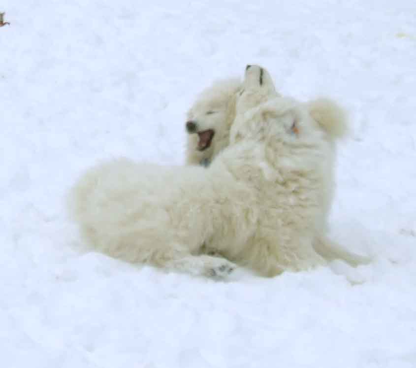 Re: Anyone have SNOW yet ? - Charlie B - 12-27-2012 Ed, you only need to clear enough so you can go railfanning.....You are retired now, the important things change. ![]() Charlie Re: Anyone have SNOW yet ? - teejay - 12-27-2012 Looks like there is a shovel in my future too . The way the wind swirls around our house , it takes most of the snow off the lawn and plunks it on the driveway . Waiting for a neighborhood kid to knock on the door is a waste of time ....so I'm elected . We ended up with about 5" of snow after yesterday . ![]() T Re: Anyone have SNOW yet ? - Sumpter250 - 12-27-2012 I can still see the blades of grass sticking up through.....but the little snow we do have here, has been here for several days now. Guess I won't be seeing any warm-up, until Spring ![]() ![]() Re: Anyone have SNOW yet ? - BR60103 - 12-27-2012 Ours came a couple of hours after Teejay's - during the night. Shovelled once this morning and it was moderately heavy for a couple of inches. The guy across the street brought his snowblower over while we were out and cleared the windrows from the snowplough. Re: Anyone have SNOW yet ? - teejay - 12-27-2012 Must admit I didn't shovel snow today ...one job I hate ....hoped the sun would help me out . Unfortunately it was a little too cold out for any melting . Maybe tomorrow . Looks like it was a pretty widespread storm . Re: Anyone have SNOW yet ? - TinGoat - 12-28-2012 Here's our little girl in the snow... Re: Anyone have SNOW yet ? - teejay - 12-28-2012 I recognize the expression .....our Pug , Darla , refuses to go unless I clear out a spot for her . She can hold out for a day if it comes down to a standoff . ![]() T Re: Anyone have SNOW yet ? - Charlie B - 12-28-2012 Here is what our two Samoyeds do in the snow. The first time this winter that the mud isn't all over them. The snow acts like a dry cleaner for them. My mother has a pug and I understand how bad the deep snow is for the little short haired furkids. ![]() Charlie Re: Anyone have SNOW yet ? - teejay - 12-28-2012 I'll have to show my wife , Bonnie , of her namesake in the snow ![]() Re: Anyone have SNOW yet ? - TinGoat - 12-28-2012 teejay Wrote:I recognize the expression .....our Pug , Darla , refuses to go unless I clear out a spot for her . She can hold out for a day if it comes down to a standoff . The bus stops at our front door and Penny loves to ride the bus... She likes the snow but she hates her winter boots. She'd be fine barefoot except that there's so much salt and slush. So I use my Metropass, we hop on the bus and ride a few blocks. Then she has no choice but to waddle back home in her booties. ![]() Re: Anyone have SNOW yet ? - cn nutbar - 12-29-2012 Hello Everyone---more snow today (YAHOO ![]() ![]() ![]() ![]() ![]() Re: Anyone have SNOW yet ? - Charlie B - 12-29-2012 We were to get 1 to 3 last night, I just got done cleaning the driveway, we got 8 more inches, that totals 16 to 17 this week. Enough is enough. Charlie Re: Anyone have SNOW yet ? - tomustang - 12-29-2012 Have a modest 5 inches of snow, far too many accidents on the highways to even get anywhere, perhaps tomorrow Re: Anyone have SNOW yet ? - eightyeightfan1 - 12-29-2012 Another 5 inches tonight. Re: Anyone have SNOW yet ? - Charlie B - 12-29-2012 Ed, what's the total there? You guys are really getting hammered. Charlie |