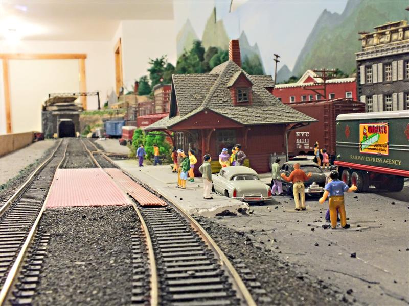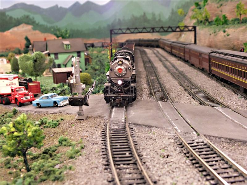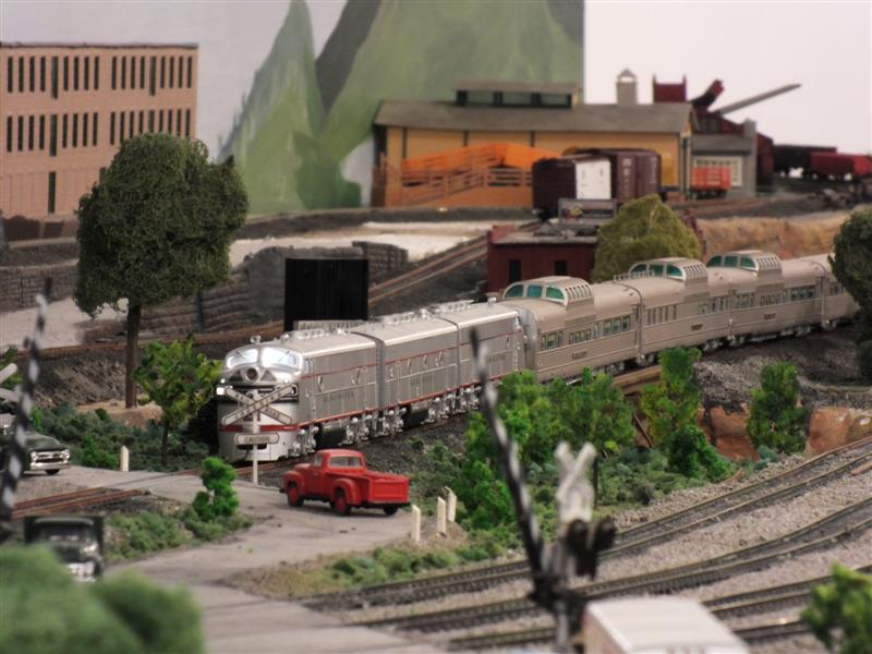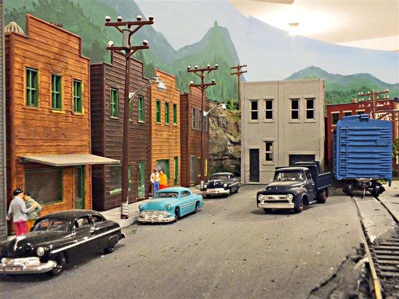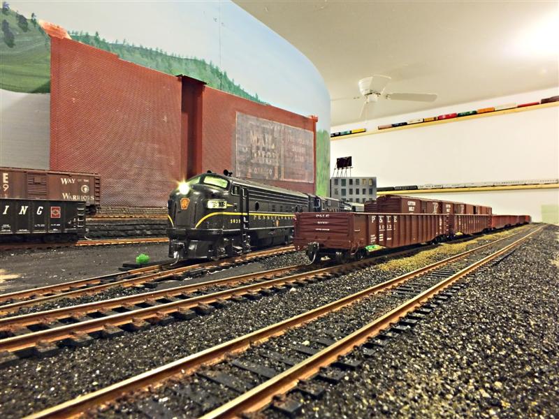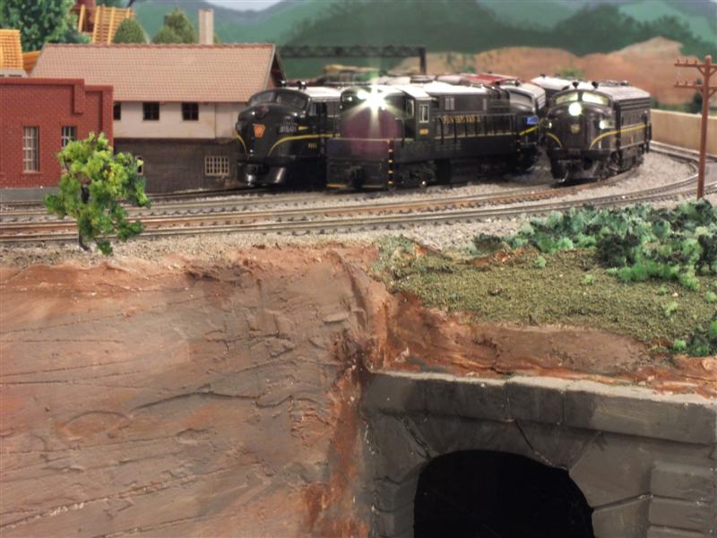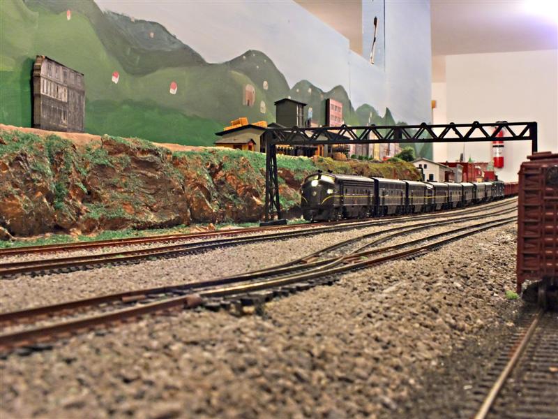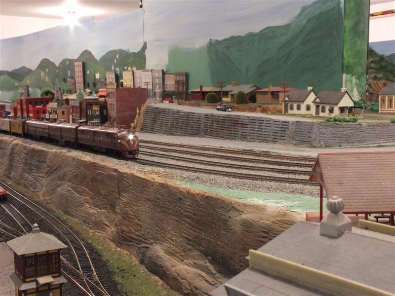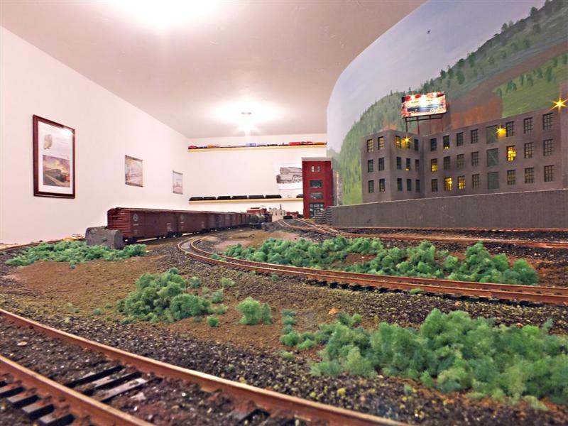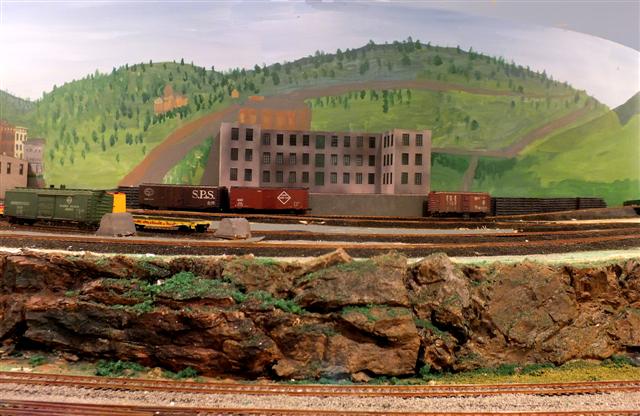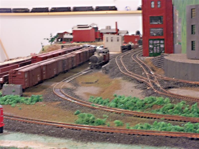 Re: Charlie b's layout - Charlie B - 04-30-2013 I can't believe it has been a month since I updated this. I guess I haven't got much done that is noticible. I've been putting rock castings on the other cliff faces and making them look a little better. I have another corner looking better. The rail that hasn't rusted really stands out. That is the one easy detail that really makes a difference. Charlie Re: Charlie b's layout - Tyson Rayles - 04-30-2013 Good to see you back at it Charlie. ![]() Re: Charlie b's layout - doctorwayne - 04-30-2013 That's really lookin' good, Charlie. ![]() ![]() ![]() Wayne Re: Charlie b's layout - Charlie B - 04-30-2013 doctorwayne Wrote:That's really lookin' good, Charlie.Only if it is raining too hard.... ![]() Charlie Re: Charlie b's layout - Charlie B - 05-11-2013 This morning was a good morning to work on the layout. I had 5 sidings I wanted kill switches on and I decided to break the layout into power districts with protection for each district. I got 4 separated and the protection installed. I'm using 1156 bulbs in series for the time being. I took a few railfan pictures tonight. First off some action at the top of the grade. 2 coming up on the inside tracks and a set of helpers passing on the outside. Next the CZ is waiting its turn at the hill. It has stopped to clear the crossing. A view of some of the town. And an E7 leads a consist with a PB1 and an E8 adding power for this hot load of perishables. Charlie Re: Charlie b's layout - doctorwayne - 05-12-2013 Lookin' good, Charlie, and you're really making good progress on filling in areas and adding scenes and details. ![]() ![]() I don't recall seeing that Zephyr before - who makes it? Wayne Re: Charlie b's layout - Charlie B - 05-12-2013 Wayne, the CZ is one of the early Broadway Limited Imports. I got the whole set at a really good deal in 2007 or 2008. I have kept it packed away for most part. The wheel sets on the cars had to have a lot of work, many were out of gauge and the axle ends looked like fish hooks. It was fairly easy to get them fixed up. I bought the PRR sleeper that was a run through and a couple extra cars. My excuse is the PRR borrowed a set to try to increase passenger revenues. Clearance wasn't a problem ![]() Charlie Re: Charlie b's layout - Tyson Rayles - 05-12-2013 ![]() ![]() ![]() Re: Charlie b's layout - cn nutbar - 05-12-2013 Hi Charlie---your layout just keeps getting better and better ![]() ![]() Re: Charlie b's layout - Charlie B - 06-08-2013 Good morning Blue I have an area on the layout that needs a building. I remember a building in my hometown that was U shaped. It housed a skating rink and the VFW on the top floor, which was actually street level at the rear wall. The lower level had a car dealership and there was also a GMC/Reo truck dealer there. There was even a plate glass dealer in the lower level. I am not an artist and it is a shame because for some stupid reason I can picture the building side from the lower level like I was standing there now, even down to the railroad track and the huge water puddle. I could find a poor aerial picture that showed it but nothing that was helpful. It was next door to the Enterprise Coal Company, a dealer in house coal (another thing of the past). 2 years ago while in Ollie's, a bargain store, I found some IHC kits for sale cheap, and I bought some. One of these was the Novelty Iron Works. I kitbashed it into a long narrow warehouse building to use on one section of the layout. It is taking 2 kits, but for less than 20 bucks I will have a representation of the building I remember. It still will be about 100 feet shy of the full width that I remember, but when you don't have room you do your best. ![]() Here it is set in location temporarily. I had to make the floor and I have the roof made. I still need to cut floors for between the stories. (this evenings project.) Though far from the original, some signage will suffice to bring back the memories. Thanks for looking. Charlie Re: Charlie b's layout - doctorwayne - 06-08-2013 Lookin' good, Charlie. ![]() ![]() You're right about that structure, as it's a real kitbasher's delight. I've started on mine, but nothing yet worth showing. ![]() Wayne Re: Charlie b's layout - Charlie B - 06-10-2013 Here it is with a few windows installed and set in place. Interior lighting and work around the outside and the street in front needs to be done yet. Charlie Re: Charlie b's layout - Charlie B - 06-13-2013 I got the lights and the bill board in place. Charlie Re: Charlie b's layout - Charlie B - 07-04-2013 I have done some work lately but nothing that I think is noteworthy. Just the usual stuff, painting rail, installing walls, fixing defective cars and locomotives, but here are some pictures taken around the pike this afternoon. Re: Charlie b's layout - Charlie B - 07-04-2013 And just a few more. Happy 4th of July to my fellow Americans, and to everyone, everywhere, have a great day . Charlie |