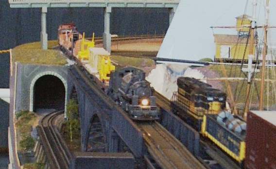 Re: "New modules" - Sumpter250 - 11-05-2010 Russ Bellinis Wrote:Pete, are you going to install "dock bumpers" to protect those boats from wave damage on those docks? The cut stone wharf, will have pilings, and some horizontal wood structure, as a buffer against the stone, The boat docks will probably not have any "installed" protection.....most boats carry fenders, that can be rigged, depending on the dock's configuration. 10:40 AM 11/5/10 the modules are in the trailer, and once all the other stuff is loaded, I'm off to Rockford, Il. for this weekend's train show. Everything seemed to work well....in the basement....now I'll see if things still work well after "transportation". There's still a few bits ( read that, tons of ) details left to be added, and the waterfall will go "unbuilt" 'til after Trainfest, next weekend. All the major construction is done, and I'm pleased with how it is looking. I'll try to remember to take the camera,.......and the battery charger......tomorrow. I should be able to get some decent shots of the complete set, at the show. Re: "New modules" - Gary S - 11-05-2010 Have fun, Pete. Looking forward to seeing the photos of your weekend outing. Re: "New modules" - Sumpter250 - 11-06-2010 Pictures....well, I did say I'd TRY.........Tomorrow then. Everything got to the show in good order, the 50+ year old freight house lost a couple of cast metal drums, and barrels ( hey, the glue held for 50+ years !, so I'll have to re-attach them. The ships all arrived safely. There were a couple of minor problems, but nothing that stopped trains from running! I'm confident that Trainfest will go well. This is the first time, since the beginning of this project, that I've "set up" the modules, after transport. It will take me a couple of more times to get it all down correctly, but it still went well enough. Got lots of very positive comments, from just about everybody, so I guess I'm not the only one who thinks the set looks good. Re: "New modules" - doctorwayne - 11-07-2010 Sumpter250 Wrote:Got lots of very positive comments, from just about everybody, so I guess I'm not the only one who thinks the set looks good. And you were surprised?? Wayne Re: "New modules" - Sumpter250 - 11-08-2010 doctorwayne Wrote:Sumpter250 Wrote:Got lots of very positive comments, from just about everybody, so I guess I'm not the only one who thinks the set looks good. Very pleasantly, yes. I suppose it's because I know the shortcomings of my own work, even where it can't be seen. Re: "New modules" - Sumpter250 - 11-08-2010 Picture time: Train show in Rockford, Il., at the Midway Village and Museum. First, all three modules. The "water area" with trains running. Looking "north" the great white blob, is the unfinished waterfall. That work begins after Trainfest. The 2-6-6-2T with tender, three flat cars with an overhead traveling crane in transit, and the shipyard's work train ( Spring challenge ) The Brigantine again, with the skyboard behind so no "clutter". Engine facility at the "South end". Lookin' South down the seaport wharf. The walk bridges with the boat docks behind. The most commented on, and complimented, were the ship models. The satisfaction here, is that for years, I've wanted to have a scene where both disciplines, RR, and ships, could be displayed together. That, is now realized. Re: "New modules" - Gary S - 11-08-2010 I can understand that the ships were well received. They are simply freaking fantastic! And it is very cool that you combined your love of ships with your love of trains. I'm sure you had a great weekend showing off your craftmanship. Re: "New modules" - P5se Camelback - 11-08-2010 A long term dream is realized ... and beautifully realized, at that! You should be proud, young man, very proud of your accomplishments! Kudos!