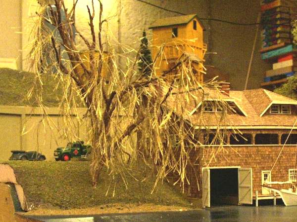 Re: "New modules" - Sumpter250 - 07-15-2011 It's been 8 months?! got some catchin' up to do. The modules went to Trainfest, the weekend after the Rockford show. I didn't get a chance to play, or take pictures, we were too busy at the GC Laser booth. When I got home, and started to move the modules back to the basement, I discovered that there had been a significant amount of damage during the transit. I've been repairing things, and trying to figure out how to prevent more damage. The old module set were all 24" deep, so there was room left in the trailer to use a "tension-er" to lock the modules in. I couldn't do that with the 30" deep new modules, so what happened was --when the trailer "bounced", the modules "continued their upward motion" as the trailer came down, and the trailer was moving upward as it made contact with the downward moving modules .-.-.-.-.- and they were " beaten to death ". I'm still trying to figure out a way to hold them down, that is quick and easy to put in place, and tighten, as each module is loaded in the trailer ( there is a slight problem here, with sliding the modules into the trailer, and then rigging the hold-downs, that is keeping that project from being done ). In the meantime, the lobster sloop was built, and the lobsterman's shack, and the pilings and dock. The finished "complex" in place on the module.( yeah, another "ship to rig" ) I've rebuilt the staircase of the coaling tower, repaired the coal chute, and need to add the handrails, and posts, and paint the repairs. I had to partially disassemble the freight house, and reassemble it, re-gluing everything that "shook loose". The roof of the "Shipchandler's" had to be reattached, and the steel arch bridge decks had to be refastened. I still have repairs to make on the sand tower, the water tank, and the turntable. In the last two days, I started detailing the falls, where the stream enters the harbor. The plaster is still too wet to start the coloring process, so I have time to charge the camera batteries, and get some pictures taken in the next day or two. Re: "New modules" - MasonJar - 07-15-2011 Do you have a picture or diagram as to how the modules are transported? We have a wide range of shapes and sizes of modules at <!-- w --><a class="postlink" href="http://www.hotrak.ca">www.hotrak.ca</a><!-- w --> and all have been transported on a regular basis without much damage over the years. Andrew Re: "New modules" - Sumpter250 - 07-16-2011 This picture shows the old set being loaded in the trailer. The two "white things" on the trailer bed, at the opening, are shelf brackets. A "shelf" with two bolts in "T"nuts, goes there, and the bolts tighten against a board with a carpet strip on it that goes against the face of the last module. Because the new modules extend all the way to the opening, I can't use this tensioning device, the plan, for now, is to, somehow, rig similar tension-ers ( 6, one per each module end )to the cover, that will hold the modules down, rather that "compressing" front to back. These will have to be installed as each module is loaded, and removed before each module can be unloaded, which will be a bit more time consuming, but I think that will still be the best method of keeping the modules from bouncing around. Twenty years of transporting the old set, shows that the actual trailer motion is not harmful,so if I can keep the modules firmly in contact with the trailer bed, I should not have any more damage. The real trick here, is adhering to the KISS principle....it has to be effective, but I have to Keep It Simple, Stupid, and make it easy to use. Re: "New modules" - Sumpter250 - 07-18-2011 The Coal tower repairs are almost complete. The new stairs are built, installed, and painted. The Sand Tower repairs are done. And, the old freighthouse is repaired. The plaster was still damp, so I couldn't begin coloring/staining/drybrushing.......yet. The lobster shack,etc is getting "details". and... there's a new Athearn boat bash nearing completion. This is the third try at a willow tree, and the best looking start so far. The first two tries were ---- let's just say I knew I could do better, and leave it at that. This hasn't happened all at once, I just got around to taking the photos :oops: Hey!, I'm a model builder, not a photographer.