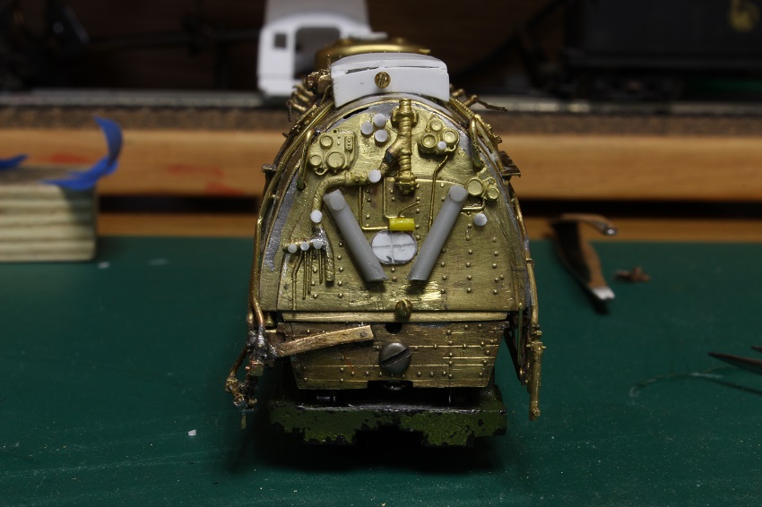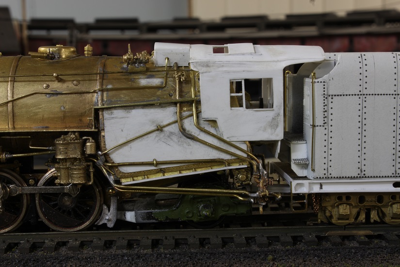 Re: Wyoming valley super Mike kitbash - e-paw - 01-13-2016 A few more details done today. I installed the straps that hold the plumbing to the firebox, installed an aux reservoir under the cab, and some airlines under the firebox. And on the front end I corrected the length of the boiler supports, They were too long, played around with the steps on the boiler front and added the strainer line to the feed water heater. To do this I had to relocate the front handrail station a little more forward. Also the steam feed to the power reverse was added. I need to get the sander lines from the LHC so that the other plumbing can be completed. Re: Wyoming valley super Mike kitbash - Schraddel - 01-15-2016 Very nice work! Your loco will became a plumbers nightmare Lutz Re: Wyoming valley super Mike kitbash - cnrglen - 01-15-2016 Looks great, the detail is impressive. Re: Wyoming valley super Mike kitbash - e-paw - 01-17-2016 Made some real headway today and completed the plumbing on the boiler along with the handrails and the last of the fire box details. This include the sand lines and valve, which proved the most difficult thing to complete. For the fireman's side, the last of the firebox details are on including the ash pan extensions. The Feed water heater lines are now finished, and the sand lines are complete. More of the same for the engineers side. Re: Wyoming valley super Mike kitbash - e-paw - 01-17-2016 A few overview shots of the nearly completed model. Re: Wyoming valley super Mike kitbash - doctorwayne - 01-17-2016 Very nicely done, Steve. Wayne Re: Wyoming valley super Mike kitbash - Schraddel - 01-18-2016 to doctorwayne.Steve, this is really an outstanding workmanship to create a specific loco. ![]() Lutz Re: Wyoming valley super Mike kitbash - cnrglen - 01-18-2016 Great work Steve. It looks like a real pulling beast Re: Wyoming valley super Mike kitbash - cn nutbar - 01-18-2016 Outstanding work Steve Re: Wyoming valley super Mike kitbash - modelsof1900 - 01-20-2016 Steve, really great work! A great looking steam engine! Congratulation! Yes, I would like to see it painted and lettered! Re: Wyoming valley super Mike kitbash - e-paw - 01-21-2016 Thanks gents. I will have to wait till the weather gets a bit warmer for paint. Right now I am researching the back head details on similar engines with duplex stokers so I can get the cab to look somewhat Correct. Re: Wyoming valley super Mike kitbash - Sumpter250 - 01-22-2016 No argument here, That is one very nicely done loco and yes I can't wait to see her in paint, and lettered.