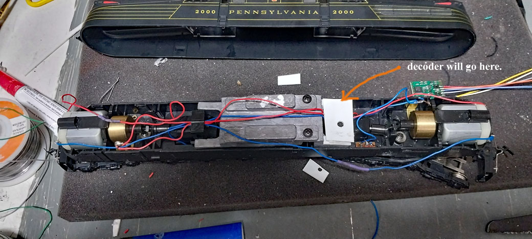 RE: Charlie b's layout - Tyson Rayles - 04-24-2023 ![]() ![]() ![]() RE: Charlie b's layout - Charlie B - 04-26-2023 I did some more work on the Q@ that was started many months ago. I installed a Tsunami 2200 sound decoder for articulated heavy steam. I got the speakers from electronic gold mine at a very reasonable price and the sound is very good. The tender needs some weight and there is a receptacle for a keep alive which I have builts but I did not have the proper plug. I also think the tender trucks need some adjustment but it is to the point where I can breath easy. Worrying about the install was more work than doing it. Sorry, it was too easy to need photos. Here it is on it's first test run. Charlie RE: Charlie b's layout - Charlie B - 04-26-2023 Here is a short video clip. It might not show up, I don't know how to work the new Youtube ![]() PRR Q2 Charlie RE: Charlie b's layout - cn nutbar - 04-26-2023 Wow---Pennsy certainly had some impressive motive power---the video works great Charlie---looking forward to seeing this locomotive on the head end of a heavy consist on the Wilderson Division. RE: Charlie b's layout - jim currie - 04-27-2023 wow seeing your T-1 brings back memories of one i owned in the past one of the bowser/penn line die cast duel motor ones weighed a good 5 or 6 lbs. but would pull evert car i owned at that time. traded it off for a ammo can of 30 06 in M1 opp clips wish i had that loco back now. Jim RE: Charlie b's layout - Charlie B - 05-05-2023 I took a break from the Q2 and have started working on a ALCo C630 to add to the "modern" fleet. Conrail worked these brutes and they did what they were designed to do. I knew a mechanic that worked on these at conway and he said they were really easy compared to the other brands. He said they could have a head off before the water was completely drained. I loved the sounds of these 3000 horsepower beasts Charlie RE: Charlie b's layout - Charlie B - 05-06-2023 Tonight I got the flat black paint on the Q2 tender trucks and the locomotive cylinders and frame. I applied a little weatering to Conrail 6753 but I didn't take photos. I want to apply the decals to the Q2 tomorrow and apply dull coat to everything then I will post some photos. Charlie RE: Charlie b's layout - Charlie B - 05-23-2023 Well the Q2 has been a problem with intermittent stopping, I put my voltmeter on the track and the drivers on the oppisite side and there was no voltage. I had cleaned the wheels so I knew that wasn't the problem so after many hours of head scratching I finally dawned on me that the trailing truck and pilot were lifting the drivers just enough so they randomly lost contact. There are no electrical pickups on them, both wheels are insulated to stop other shorting problems I am guessing. I can adjust them so the weight is on the drivers and that should solve the problem. It runs great without the trailing truck so I have made a start on fixing the problem. ![]() Charlie RE: Charlie b's layout - Kitty - 05-27-2023 (03-08-2023, 09:25 PM)Charlie B Wrote: I don't have enough irons in the fire so I have decided I need a massive yard to display all of my rolling stock. I just don't like having it in boxes and drawers under the layout so I am taking a foot off the east side and 16 feet of the north side to build a yard. I made a VERY rough drawing of what I hope to accomplish. I will be adding another 300 feet of track for the yard/s. Are you building any scenery in the yard, or is it just a display for rolling stock? I only just started and am already glancing at those fancy new cars, I can only imagine... Liking the idea though, in boxes it is just getting dusty without doing anything. RE: Charlie b's layout - Charlie B - 05-27-2023 Kitty, There won't be much room for scenery but I may have a yard office and a car repair track. Charlie RE: Charlie b's layout - Charlie B - 05-27-2023 Finished a decoder install in a Bachmann Spectrum F40PH now it needs some couplers installed Charlie RE: Charlie b's layout - TMo - 05-29-2023 (05-05-2023, 09:14 PM)Charlie B Wrote: I took a break from the Q2 and have started working on a ALCo C630 to add to the "modern" fleet. . The "CR" decals were variable during the rainbow years, but I've had good luck mimicing the look in that prototype photo by taking a set of Penn Central decals, and chopping the "C" and the "R" out of that decal set. Gives you that "slanted" look to the letters. RE: Charlie b's layout - Charlie B - 06-18-2023 23 years ago I bought a commemorative train set put out by a local grocery chain. The price was 29.95. The kicker was the set included a GG1 by Rivarossi and they were selling for 39.95. I have decided that the market value of these was never going to be as great as the play value so I got the set out and popped the shell of the locomotive to install a decoder. Having 2 motors I thought the current draw would require a heavy decoder but to my surprise full speed current draw with both motors was a little less than 1/2 amp so I can use the D13W decoder i have on hand. There is lots of room and the motors are isolated as well as pickups on all 20 wheels. I have built a plastic bridge over the rear of the front truck for the decoder. Tonight I will install the lights and wire it up. The red motor wire turns out to be the negative and the blue positive . I don't plan on much running for this set so I don't plan to change the couples yet. Charlie RE: Charlie b's layout - TMo - 06-18-2023 Love the GG1 - so much PRR history through those units. Only way they'd run through the gorge would be a trip to the junkyard, so I haven't sought one out. Saw a New Haven layout in Great Model Railroads 2016 with a full (and brilliant) set of catenary. A huge effort to build that scenery, but it was gorgeous. Pushed me right away from every entertaining an idea to do a layout under wire! RE: Charlie b's layout - Charlie B - 06-18-2023 Todd, we have a modeler here that models under wire but he has be