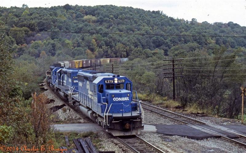 Re: Trains on this day in the past: - Charlie B - 10-17-2015 October 17, 1976 College Yard, Beaver Falls, Pa Everything is gone now. Charlie Re: Trains on this day in the past: - Charlie B - 10-18-2015 October 18, 1977. Under the signal Bridge east of Enon Valley, Pa in the afternoon glow. Re: Trains on this day in the past: - bdw9535 - 10-19-2015 Southern RR of NJ's GP10 with stone cars at Winslow, NJ October 1998. Bruce Re: Trains on this day in the past: - Charlie B - 10-19-2015 KJR 7135 ALCo S1 at MP 2 on the Bagdad branch 10/19/2001 Charlie Re: Trains on this day in the past: - Charlie B - 10-20-2015 10/20/1979. Toronto. |