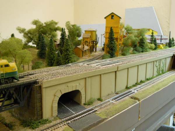 Re: "New modules" - Mileswestern - 10-26-2011 All of your nautical waterfront stuff looks fantastic! However, that tunnel and retaining wall looks lackluster and not up the standards of the rest of your excellent work. Why not replace that awkward tunnel with a girder bridge for more road clearance and realism and then start the retaining wall on the other side? It would look better. Re: "New modules" - Sumpter250 - 10-27-2011 Mileswestern Wrote:All of your nautical waterfront stuff looks fantastic! The "awkward tunnel", hides the "construction", supporting the sub road bed, that insures that the track remains level, that far into the module, and, just happens to be where there is a turnout, for the lead into the engine facility. I played around with the idea of a deck girder bridge, but with five and a half feet of "bridge" already in place, I opted for the " tunnel " instead. ( in spite of the fact that it was a real bear to construct, the road actually runs at an angle to the tracks in that spot. ) This older shot shows the track, and the " geological anomaly " of the water level to ground level change that occurs at the module boundary. That area is......."difficult". You are right, though. That "tunnel" isn't as pleasing as I would have liked, but it will last until after Trainfest. Then ?, I'll have to give it a lot of thought, before making any serious changes. A bridge there would make the boathouse more visible from the "spectator" viewing angle, and, would increase the "bridged length" from 5' - 8", to 6' - 4". A deck girder bridge would also hide most of the sub roadbed construction, and still look like a bridge....... yes, a lot of thought.....