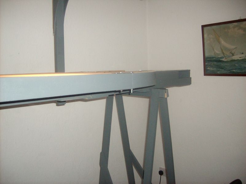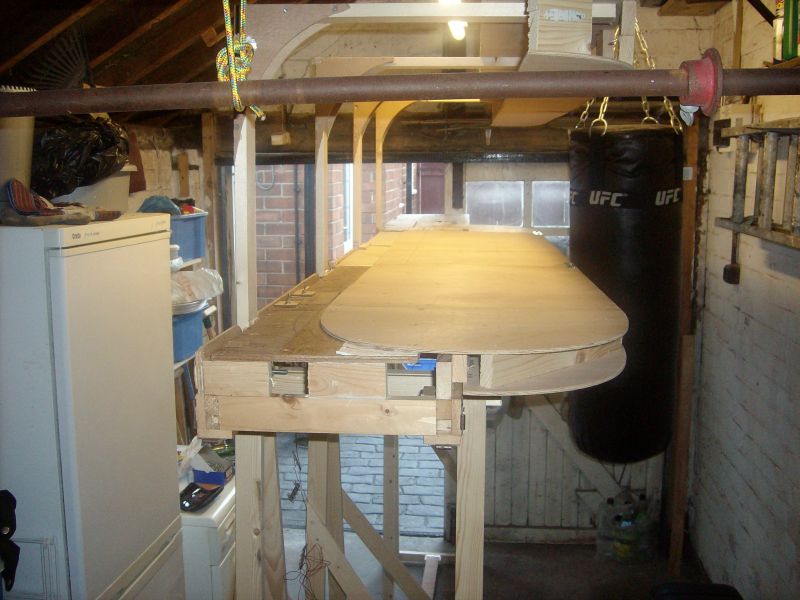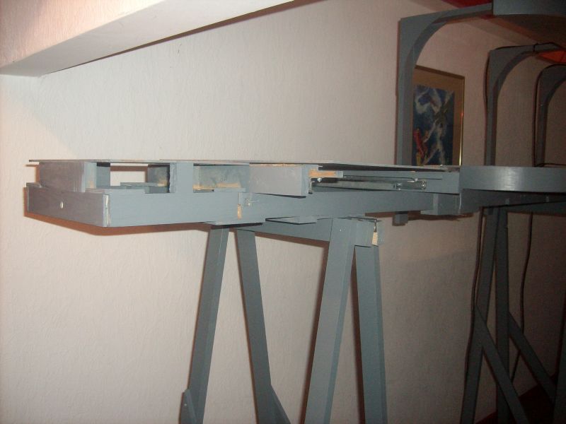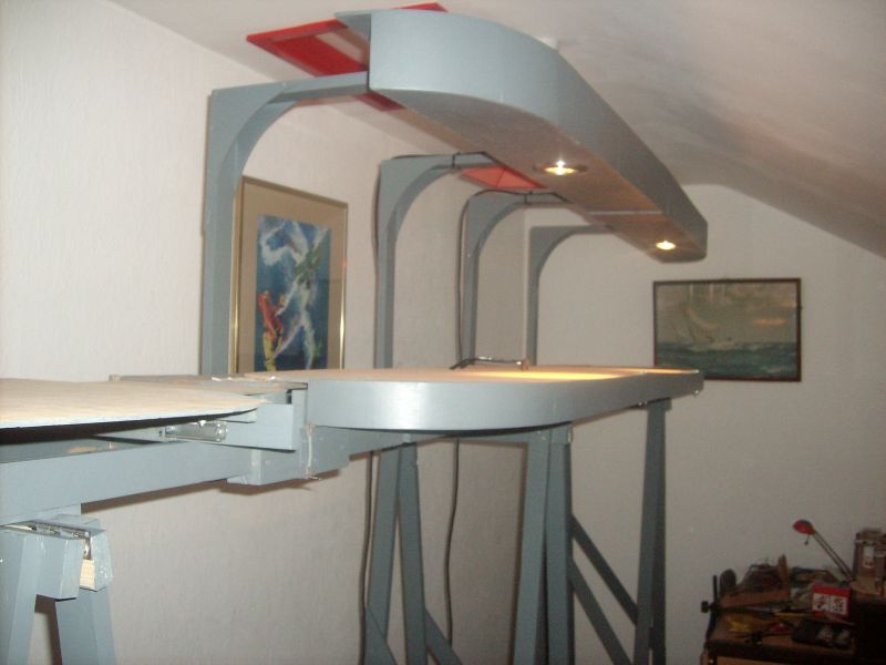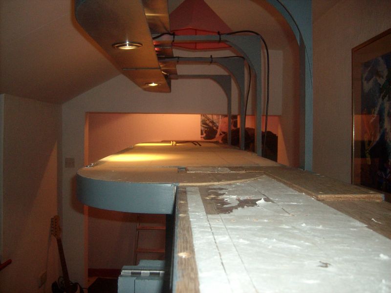 Re: Newbie - UK modeller attempting new ' Downtown LA' layou - jonte - 05-20-2011 faraway Wrote:jonte Wrote:....Hope this makes things a little clearer.... Due more to ignorance than design, Reinhard The anomaly of the main road following the diverging track was an idea picked up from an article in an old Model Railroader mag I picked up on the topic of 'oddities'. It also provides an opportunity for the stock to 'deviate' it's route on what is essentially a typical, long thin shelf layout. As I want to create that 'between the buildings' feel, it will prevent the observer looking down a long corridor and seeing the whole layout at once; in essence, the alleyways will be in a dogs -leg formation. Although it's not exactly a micro, there's still not a lot you can do to create interest in a relatively short rectangular space such as this. Finally, not a lot going on operationally, but I want to avoid the layout feeling ovrcrowded. I'm also conscious of the golden rule advocated by a number of UK modellers: (3 : 1) i.e. the layout should be at least three train lengths in total viewing length. I want to run with a loco and two cars, possibly three, for that shortline feel, which is just about right. Your right, this isn't a typical US outline plan; definitely the mark of the space-starved Englishman about it Best wishes, Jonte Re: Newbie - UK modeller attempting new ' Downtown LA' layou - jonte - 05-21-2011 A service hatch produced from scraps. Jonte Re: Newbie - UK modeller attempting new ' Downtown LA' layou - jonte - 05-22-2011 Jonte Re: Newbie - UK modeller attempting new ' Downtown LA' layou - jonte - 05-23-2011 This the last of three boards requiring service hatches fitting. Removeable hinge pins replace the originals, allowing each board to be secured to its neighbour - centre boards have hinges supplemented with bolts between the frames of each adjoining board. Jonte Re: Newbie - UK modeller attempting new ' Downtown LA' layou - jonte - 05-24-2011 All four boards pictured for the first time - supports removed to reduce weight and ease lifting onto trestles. Replacement hinge pins in place. Jonte Re: Newbie - UK modeller attempting new ' Downtown LA' layou - jonte - 05-24-2011 Jonte Re: Newbie - UK modeller attempting new ' Downtown LA' layou - jonte - 05-24-2011 Traverser has been removed for time being to ensure the other three boards are level and true for refitting of pelmet supports. Pelmet has been temporarily located until the morniong when I'll drill for holes for fixing bolts. Jonte Re: Newbie - UK modeller attempting new ' Downtown LA' layou - jonte - 06-08-2011 Hi Baseboards and lighting pelmet have now been painted and the whole lot reassembled in my office-cum-railway room. Low voltage gimballed downlighters have been fitted to the pelmet, however, they provide insufficient light therefore additional lighting in the form of fluorescent bulbs will be fitted. Photos attached to show progress: Jonte Re: Newbie - UK modeller attempting new ' Downtown LA' layou - jonte - 06-08-2011 Jonte Re: Newbie - UK modeller attempting new ' Downtown LA' layou - jonte - 06-08-2011 A couple more, one of which shows the wiring in place on the layout. This last photo shows how the lighting transformers and junction boxes have been placed in plastic tupperware boxes with 240V in, 12V out. Male and female connectors fitted to the transformer leads and lighting leads, connected via a flex cable make the lighting units a little more portable. Best wishes, Jonte Re: Newbie - UK modeller attempting new ' Downtown LA' layou - torikoos - 06-09-2011 I had not looked at this thread for a while, far too busy with all sorts of random stuff. :-) Those boards are coming along nicely, including the overhead lighting etc. ! I'm looking forward to the first couple of feet of track laid on them. Koos Re: Newbie - UK modeller attempting new ' Downtown LA' layou - jonte - 06-09-2011 torikoos Wrote:I had not looked at this thread for a while, far too busy with all sorts of random stuff. :-) Hi Koos, Good to hear from you after all this time and a sincere thanks for your interest and encouragement. Frankly, was gonna give up posting on here as it's not generating much interest; probably because there isn't any modelling just yet as you hinted, however, I'm learning as I go along here and I'm hoping that if nothing else, my experiences serve to encourage other newbies who might also be unsure of their skill levels etc. As a long time lurker myself, I also love to see finished products, but no matter how expertly modelled and whatever the subject, they've all got to rest on something so I consider baseboard construction essential and I expect this is the part that puts most people off!! So, if I'm boring any of you old hands here, I make no apology: we've all got to start somewhere and I'm hoping that if it works for me (or otherwise), then it can work for others to. Please consider me the lowest common denominator. Off the soap box, my ME turnouts arrived from US of A at the weekend (cocked up my order although have apologised although not going thro' rigmorole of returning all the way to America ) so I shall have to ever so slightly amend my original plan, however, track laying not too far away now. Also bought an Athearn switcher off ebay a couple of weeks ago (pig of a runner!) which I'm currently in process of attempting to repaint/redetail to an S2 of the LAJ Ry of the 1970s. Never done this before, but have already stripped original paint scheme (Burlington something or other) using a solution of Dettol and tap water. Just awaiting arrival of some drop grab irons and template to replace the moulded on ones together with some Micro scale decals for the stripes - again from America (by current form, it'll probably end up Norfolk and Southern!!). Next job is to create portable curved backscene (seamles hopefully) to which I will attach side wings to shield entries and exits to traverser and sector plates (plus 