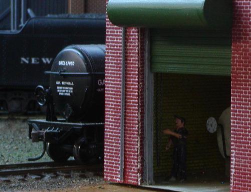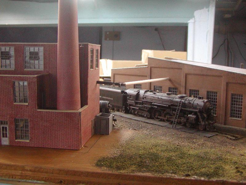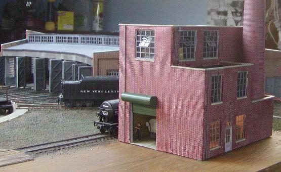 Re: An engine servicing facility for the JGL - jglfan - 06-08-2009 Spitfire Wrote:Personally I would use putty to fill the cracks cuz i'm lazy!!Looking forward to it! I've started to build a pair of transformers based on your model. I ordinarily don't like to model from another model (potentially copying errors) but I could not find photos of 1950 era transformers and commercially available ones are too modern. Plus, you were modelling ones you have worked with! Gary Re: An engine servicing facility for the JGL - jglfan - 06-08-2009 I managed to pop out the windows and then painted the mounting flange balck as I mentioned above. After reinstalling the windows I made the sills. Here is how it looks now. Light leak is fixed! Still have downspouts and electrical conduit to install, and need sills on windows on other walls, but nearing completion now. Re: An engine servicing facility for the JGL - jglfan - 06-24-2009 Well I've finished the powerhouse except for weathering and surrounding landscaping. Here are a few shots of it. Re: An engine servicing facility for the JGL - jglfan - 06-24-2009 Thought I'd show how I made the housing for the rollup door. While there is nothing out of the ordinary, I thought there may be some who might benefit from seeing it. A piece of styrene strip the same width as the diameter of a styrene tube was glued to the tube, them .010 sheet was glued around it. Next step was to use more .010 sheet to cover the ends. After sanding smooth, it was painted and put on the bldg. Re: An engine servicing facility for the JGL - e-paw - 06-24-2009 That roll up door looks good, Just like the ones on the LNE round house near Wind gap. Re: An engine servicing facility for the JGL - Ralph - 06-24-2009 jglfan Wrote:Thought I'd show how I made the housing for the rollup door. While there is nothing out of the ordinary, I thought there may be some who might benefit from seeing it. A piece of styrene strip the same width as the diameter of a styrene tube was glued to the tube, them .010 sheet was glued around it. Next step was to use more .010 sheet to cover the ends. After sanding smooth, it was painted and put on the bldg. I'm glad you did that! I made door housings on my enginehouse out of pieces of dowel stick but they really could look better like yous! Ralph Re: An engine servicing facility for the JGL - jglfan - 06-25-2009 Thanks Steve, Ralph. Sometimes I think something like that housing for the rollup door is too simple to post and people might snicker at it. A bit of an insecurity issue I suppose. But posts like it, and articles in the various mags, are how I learned to do things. A little tough to assume I can teach when I'm still a student! Re: An engine servicing facility for the JGL - cn nutbar - 06-25-2009 Nicely done Gary---having seen your layout in person,I can appreciate your workmanship when you post them here---please post some more shots Re: An engine servicing facility for the JGL - Sumpter250 - 06-25-2009 Gary, it's hard to tell from the picture, is the office lit by the lamp on the desk?, or from "overhead"? The lit office interior looks great! I'll have to take a shot of the "cabin cruiser", in the dark to show the light "from the lamp". I'll post that once the camera batteries are recharged, and I've had a chance to shoot the picture. I'm currently "up in an orbiting drydock", fitting out USS Kodiak NCC 6000, in 1:537 scale. It's been a fun build! (finescale.com, Sci-Fi, StarTrek group scratchbuild) Re: An engine servicing facility for the JGL - jglfan - 06-25-2009 Thanks Ed, Pete. Pete, the interior is lit from above. I'd love to see your shot of a cabin cruiser interior lit by a lamp! I have another question: I need to place supports for the steam pipe from the powerhouse to the roundhouse. I'm not sure on proper placement. Can I place one under the elbow and another between that one and the roundhouse? Or would they avoid placing one at the elbow and instead use two, one on either side? Here are a couple shots of this part of the scene so you know what I mean. Re: An engine servicing facility for the JGL - nachoman - 06-25-2009 I finally got a chance to browse through this entire thread. Very nice work, and this scene is coming along well. Some of the techniques you used for the bricks and windows may come in handy for my kitbash challenge structure. Re: An engine servicing facility for the JGL - e-paw - 06-25-2009 Gary, I don't think that it realy matters so much about your elbow placement. I've spent plenty of time working at Stepan Chemical in Maywood NJ. They have steam pipes running in all sorts of directions with all kinds of twists and turns in them. I say just do what looks right. Re: An engine servicing facility for the JGL - Steamtrains - 06-25-2009 I don't know "squat" about braces, supports, and such....But that steamer is just killing me..... Would love to see a "tour" of that baby....