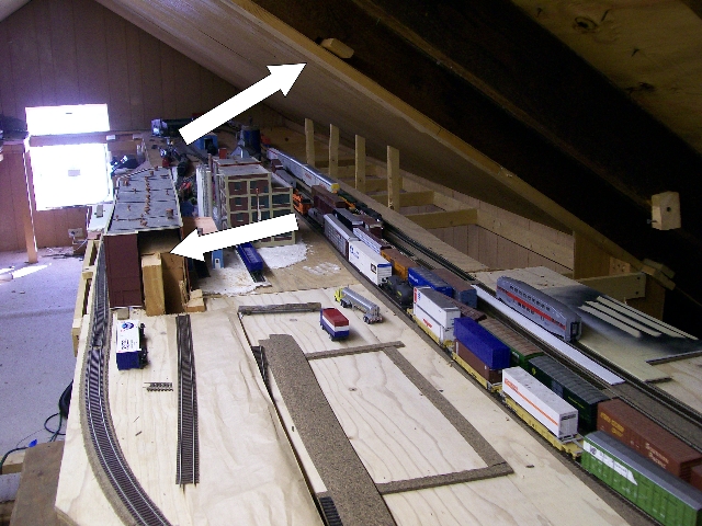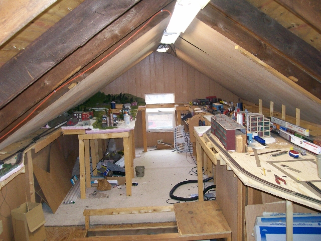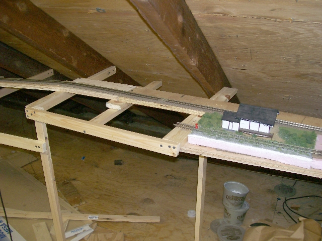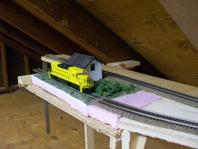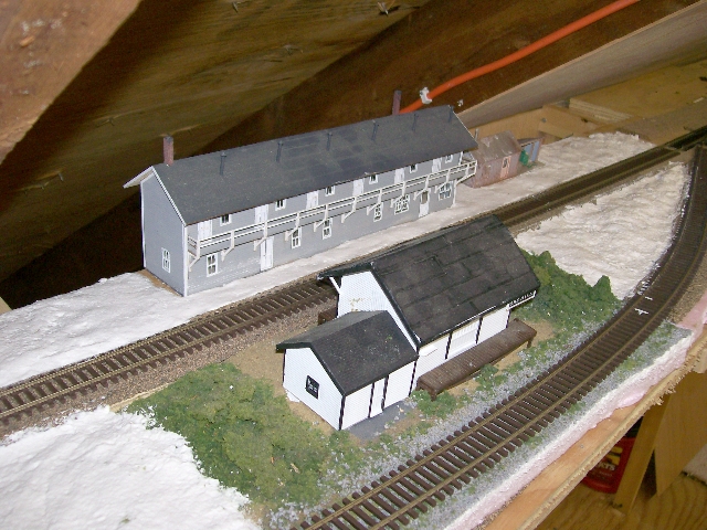 Ore Hill Transformation - eightyeightfan1 - 04-26-2009 This is my scratchbuilt Ore Hill station that I did for a challenge on the "other forum". I built it using a picture from the early 1920's and is completely scratch built using styrene. Well for the challenge, I also did some scenery work, so I can use it for pictures. Someone on the "other forum", asked if I was going to incorparate into my layout. Yep....I did. Re: Ore Hill Transformation - eightyeightfan1 - 04-26-2009 The next shots show the transformation from picture backdrop, to layout scene. Basic frame work. S&W GP38-2, parked on S&W main. More framework done, Central New England main is in the back. Southwick and Winsted main in front Plastering(Scupta-Mold) and repalced the original tarck with a single piece of flex. The bunk house was given to me by member Abutt, the storage shed is another scratchbuilt from another challenge. Some scenery work done. Working in the attic, I have no room for a backdrop. More pictures when completed. Re: Ore Hill Transformation - Sarge - 04-26-2009 Looking good Ed ![]() ![]() Re: Ore Hill Transformation - upnick - 04-26-2009 Hi Ed, Looks awesome cant wait to see more of the layout ![]() Re: Ore Hill Transformation - eightyeightfan1 - 04-26-2009 Thanks guys. Re: Ore Hill Transformation - Ralph - 04-26-2009 That is a nifty looking station Ed! Looks good with the scenery! Glad you carried this over from "the other foum"! ![]() Ralph Re: Ore Hill Transformation - Steamtrains - 04-26-2009 Great job on that station...and the layout....!!! ![]() Instead of the "typical" backdrop, just place some painted white/blue 1/8" hardboard over those rafters and you're set to go.... Keep us posted..!! Re: Ore Hill Transformation - cid - 04-26-2009 yes, I agree with the back drop idea ![]() There is nothing else I know of that gives you more bang for the buck :mrgreen: cheers! ![]() Re: Ore Hill Transformation - ocalicreek - 04-27-2009 ![]() Ditto to both the basic backdrop and insulation ideas. Nice work on the station and incorporating it into the scene. Galen Re: Ore Hill Transformation - eightyeightfan1 - 04-27-2009 Thanks for the comments and suggestions. I was thinking maybe poster board between the joists, with the joist painted the same color. either blue or white. Here's some pictures of the layout, and what space I have to deal with. Aren't us model railroaders an adatptive bunch? Anyway, this shot shows the protion that I've been working on for the last eight years. You can see that its partially sceneiced. The reason it took so long to finish a loop was that there was a psuedo wall, that I hadn't no idea what to do with. I originally cut a hole, which the planned track would of exited out on this side. This stopped all layout construction and was why it took mee almost eight years to complete a complete loop, though I did do scenery work, and it wasn't very impressive, running a train from one side to the other and backing it up, especially when visitors came over. Finally, I just took the wall out last year, which extended my yard. You can see in the second picture, arrows point to the 2x4 that was left, and where the wall ended. The building in front of the 2x4 was built to butt up against the wall. The rest of the 2x4 will be taken out and the building will get a back. The building is camoflaging a 3/4 wall. Finally, after the wall was taken down, the layout has been getting worked on at warp speed. What you see has happened in just the last two months. I'l have better luck putting a back drop on this wall though. Re: Ore Hill Transformation - nomad - 04-27-2009 Quote:the layout has been getting worked on at warp speed. Beam us up to the attic, Scotty. ![]() All that progress looks good ![]() Loren Re: Ore Hill Transformation - Steamtrains - 04-27-2009 Now tell us....How many times have you bumped your head..?? Adaptive indeed.... ![]() Re: Ore Hill Transformation - eightyeightfan1 - 04-28-2009 Steamtrains Wrote:Now tell us....How many times have you bumped your head..?? More than I can count, .........plus a couple of roofing nails. Re: Ore Hill Transformation - Drew - 04-28-2009 Nice work 88! Great lookin' layout! ![]() Re: Ore Hill Transformation - Trucklover - 04-28-2009 Nice work Ed on a nice looking layout, glad you got that wall out of there and can get back to work, lets see the loop completed here!! ![]() ![]() |