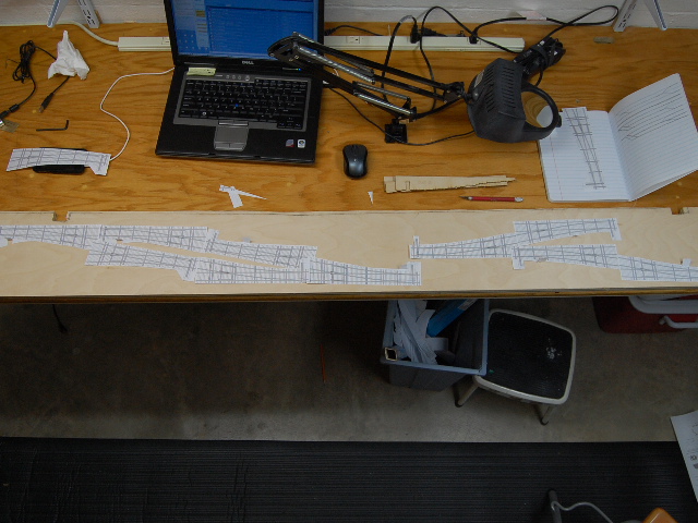 Input on a "Temporary" Shelf Track Plan - Fluesheet - 02-21-2010 I recently took down a layout that had been in place for a long time (298 Track Nails), and part of the new layout project was to move my workbench and install some shelving (Workspace Lighting). Since I will be layout-less for awhile, I'm planning on laying some track on one of the shelves to keep myself entertained and to use as a future RIP track, but need some help on a design that is functional and makes sense. Givens: - Shelf is 8' long by ~7 3/4" wide - Switch tails need to be about 18" to accommodate at least one locomotive and one car (Mikados or 0-6-0's, and 40' cars) I will be using only #6 switches (recently procured a Fast Tracks fixture as part of the larger project capitalization <g>). The initial design I came up are in the photo and diagram below. Thoughts? Placement of turnouts Plan. Sorry about the sizing - I'll crop and re-upload this tomorrow.<edit: white space cropped> Notes: Black lines represent turnouts - most are joined directly together. I suspect that when I build it, I'll be able to trim the ends of the turnouts somewhat to gain a few more inches. The vertical dashed lines are 18" from the ends of the shelf (reference lines) The shortest tails (left end of #3 track & right end of #1 track) are about 16". The longest is the left end of #1 at about 33". Others are just over two feet. ![]() Thanks! Re: Input on a "Temporary" Shelf Track Plan - shortliner - 02-21-2010 Looks good to me - I like it! ![]() Re: Input on a "Temporary" Shelf Track Plan - railroader9731 - 02-21-2010 Id like to know is there going to be idustrie flats or something to switch cars in to? Also perhaps at one end a dock for in and out bound cars, just my 2 cents. Other wise fluesheet looks good to me. Re: Input on a "Temporary" Shelf Track Plan - steinjr - 02-21-2010 Mmm - looks a little bit on the track heavy side. I guess it really depends on what you are trying to model on your temporary layout. How about something with fewer turnouts and more scenery? Here is e.g. a quick sketch of a layout somewhat inspired by Bill Dixon's Tymesaver on Carl Arendt's Micro Layouts site (in scrapbook 53: http://www.carendt.us/scrapbook/page53/index.html): ![]() In the drawing above, green cars are inbound cars, orange cars are cars to be picked up, blue cars are cars to be left where they are or re-spotted after switching. Engine is portrayed by a GP40-2 in the drawing - I don't have any steam engines in my program car library. Might give you some more ideas about what kind of things you want on your layout (and what kind of things you don't want on your layout, too) ![]() Smile, Stein Re: Input on a "Temporary" Shelf Track Plan - Fluesheet - 02-21-2010 Thanks for the comments guys. railroader9731, at this point, I hadn't planned any industries. This was initially intended to be a stretch of track to test models (cars or locomotives) on and / or as a "project" track for cars / locomotive that are awaiting work. However, then I got the turnout fixture and a single track with one spur got the steroid treatment; which segues nicely into Stein's comment: steinjr Wrote:Mmm - looks a little bit on the track heavy side. I guess it really depends on what you are trying to model on your temporary layout. Yes, I'll admit that it is heavy. If there is such a thing as a spaghetti bowl plan that is perfectly straight, mine would seem to be in (or getting close to) that category! It became an exercise to see how many turnouts I could get into the space and still have room for the minimum length tails. I didn't have a good sense whether it made operational sense though. This track plan is VERY nice, thanks for taking the time to post it. In spite of having a good amount of track, it has a very usable feel to it - amazing what a little thought and expertise can do for a space. Incidentally, what software package did you use for your drawing? Note: I've edited the image I posted to remove the whitespace. Matt Re: Input on a "Temporary" Shelf Track Plan - steinjr - 02-21-2010 Fluesheet Wrote:This track plan is VERY nice, thanks for taking the time to post it. In spite of having a good amount of track, but still has a very usable feel to it - amazing what a little thought and expertise can do for a space. Glad you liked it. It just looked like an interesting challenge to try to fit a standalone H0 scale switching layout into 7" x 8 feet. Fluesheet Wrote:Incidentally, what software package did you use for your drawing? Xtrakcad, a freeware track drawing program that can be downloaded from here: http://www.xtrkcad.org/Wikka/HomePage Btw - if you want to try it, be warned that the user interface is pretty idiosyncratic - there is definitely a threshold you have to get over to learn to use it well, but once you master it, it works pretty well - I especially like the option of adding cars and test running things to check on track placement. Smile, Stein Re: Input on a "Temporary" Shelf Track Plan - Fluesheet - 02-21-2010 steinjr Wrote:Glad you liked it. It just looked like an interesting challenge to try to fit a standalone H0 scale switching layout into 7" x 8 feet. I didn't initially get that that was a new design for meeting my criteria - I just assumed it was something that you had developed previously. Thanks again Stein! My drawing was done in Cadrail - so I'm realistic about learning curves. It (Cadrail) is a very good CAD program, but is a little short on the pretty pre-packaged graphics side. Re: Input on a "Temporary" Shelf Track Plan - Fluesheet - 02-21-2010 Updated Plan - This is pretty close to being exactly as Stein suggested, with some small tweaks. ![]() Thoughts / comments? Re: Input on a "Temporary" Shelf Track Plan - ocalicreek - 02-21-2010 Looks like it'll keep a person entertained for a while, if you like switching. Go for it! ![]() Galen Re: Input on a "Temporary" Shelf Track Plan - railroader9731 - 02-21-2010 Now it all comes together i say g