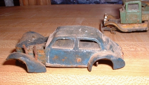 40 ford boneyard progress - Dave Harris sctchbld - 12-20-2008 OK !!!!!! IT WORKS!!! Till there is a vehicle forum this will just have to do. Here are a few pics of the progress on the 1/64 ( S scale) hotwheels 40 coupe that is nearing boneyard status. It still needs the bumpers, wheels & tires on the front, The rear end & trans are built but will not be in place , just placed in the scene when it goes in the diorama. If any of you ever had a 40 Ford you will recognize the "Jump seat" behind the drivers position . If you look close you can see the bell housing of the engine showing thru the firewall with a flywheel & ring gear . ( It's the blue thingie) Re: 40 ford boneyard progress - Ralph - 12-20-2008 That's amazing. People visiting your layout must stop and linger at your scrap yard! Ralph Re: 40 ford boneyard progress - Dave Harris sctchbld - 12-20-2008 Looks like 3 pics at a time is the limit. OK heres 3 more. Man ,thAt WAS A QUICK response Ralph , thanks. Actually these boneyard cars will be a stand alone diorama when I get enough of them done, my railroad stuff is HO Re: 40 ford boneyard progress - Charlie B - 12-20-2008 Dave. I'm sure glad you have come over too. You make Fred Sanford look like a piker. Why don't you just start your own vehicle thread, In fact why don't we have the moderator rename this Thread "Dave's junked vehicles". I think this deserves all the recognition it can get, and I hope you post the Hudson truck here too. Charlie Re: 40 ford boneyard progress - Dave Harris sctchbld - 12-20-2008 Here are the last two & one of a 34 Packard in progress. If any one wants more of the Packard let me know. I have a lot more cars in progress & a number finished but I suspect most of you have seen them in the old neighborhood, let me know if not & I'll put them on here. Re: 40 ford boneyard progress - Dave Harris sctchbld - 12-20-2008 Charlie B Wrote:Dave. Funny , My son says the same thing ( Fred Sanford) but hes talking about the front yard. Thanksfor the enthusiam & kind words , It takes another modeler to appreciate what it takes to wreck a car-- non modelers think you just beat them with a hammer or put them in a vise--- I've had people say exactly that when they see them , or when they see the burned out 50 Ford ask if I did it with lighter fluid or gasoline !!