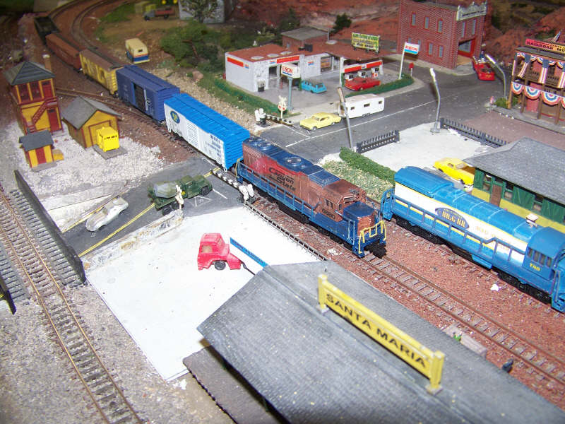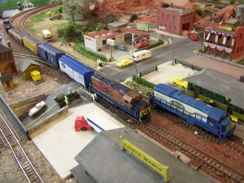 A local Canyon State engine, #6880, picks up the consist and waits on a siding while the BB&G 1780 heads down the main track.